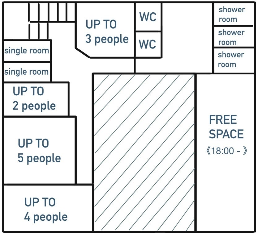 ・1人部屋から5人部屋までをご用意※1人部屋以外は全て鍵付きの完全個室。