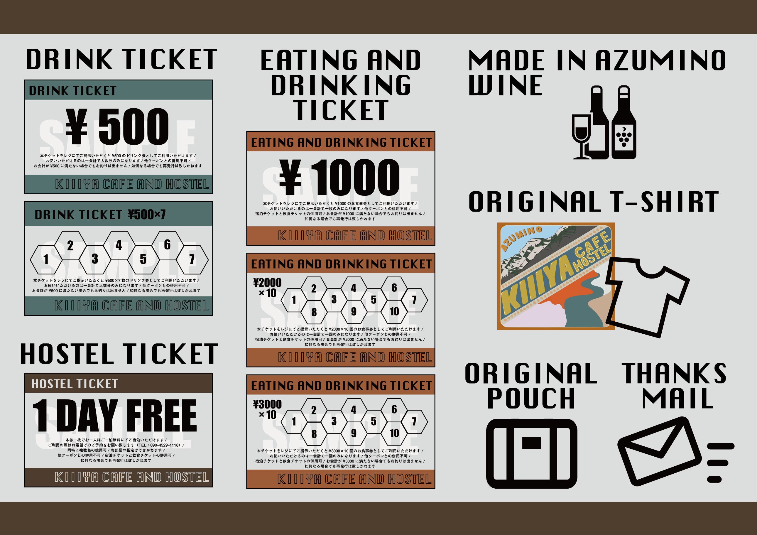 開業時に使えるドリンクチケットや、お食事券、宿泊引き換え券、