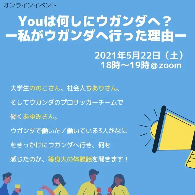 それぞれがなにをきっかけにウガンダへ行き、何を感じたのか、等身大な体験話を聞きます!