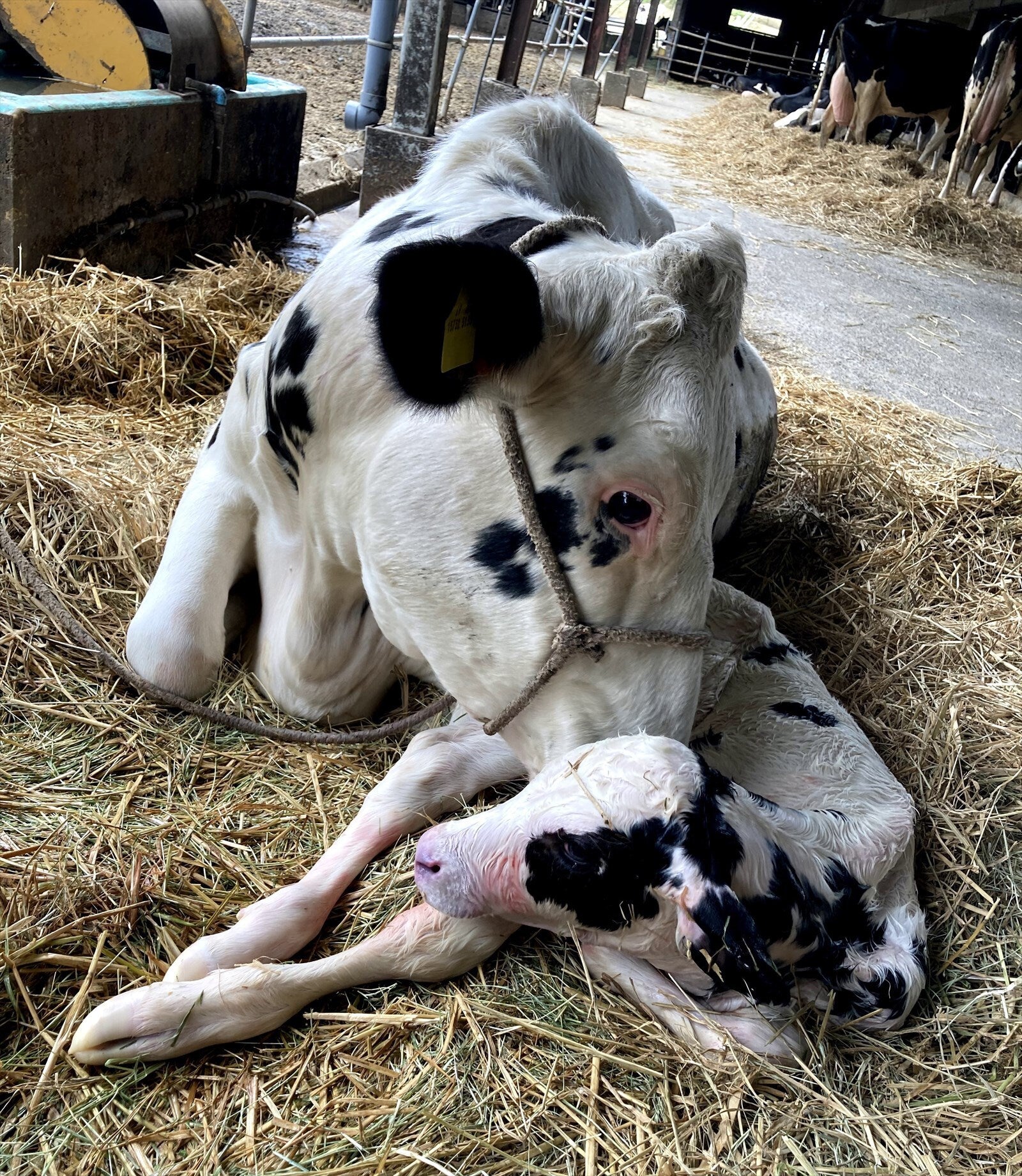 生まれたての子牛と母牛