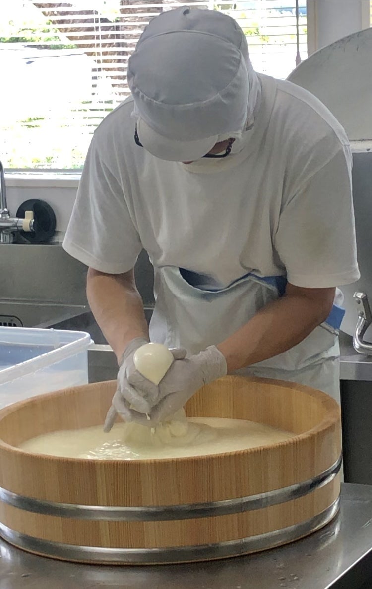 初代職人の後を引き継ぎ、現在は2名の職人が高秀牧場のチーズ製造を担っています。