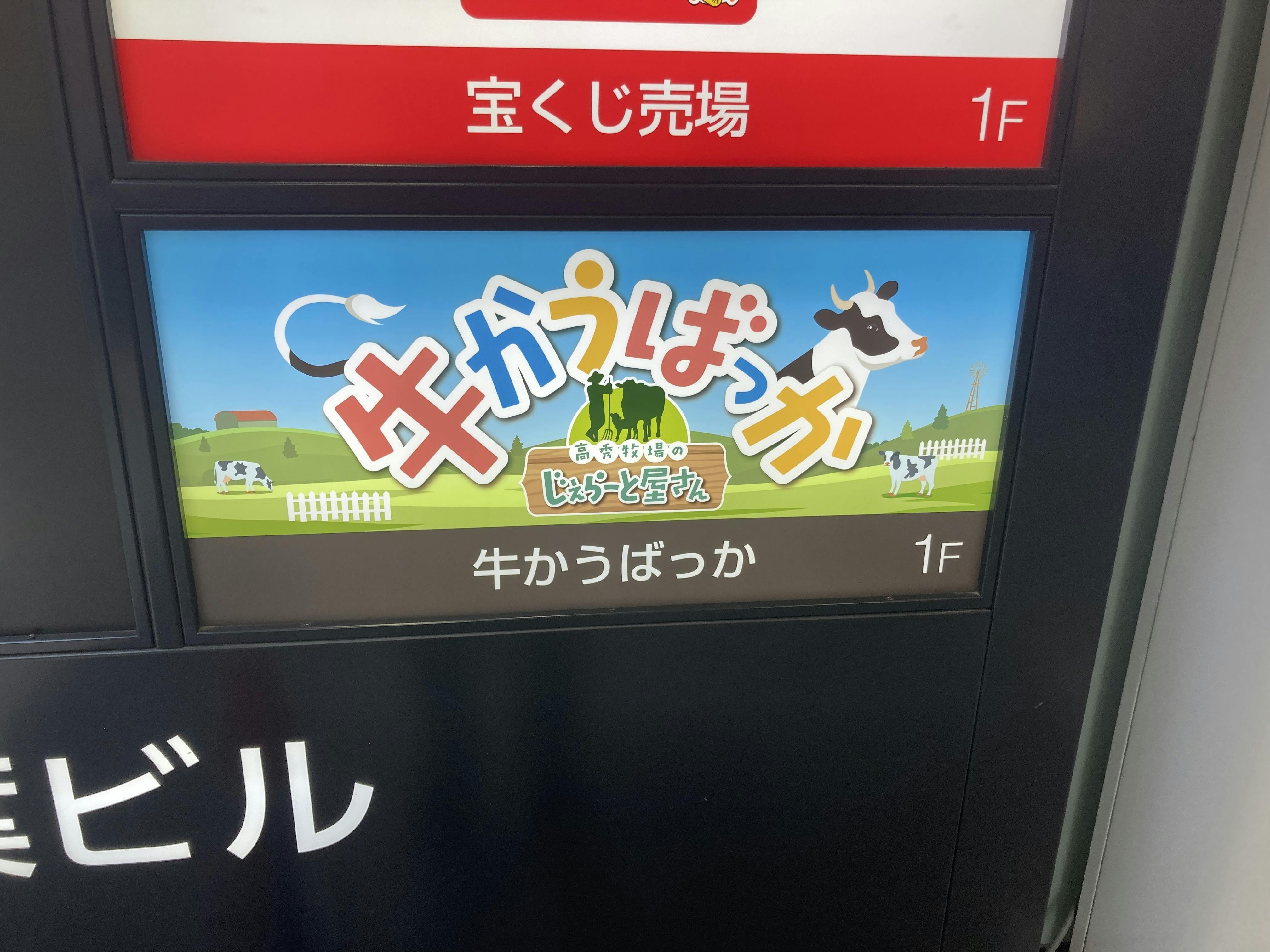 テナントに入ったビルの看板に、牛かうばっか〜高秀牧場のじぇらーと屋さん〜の看板が入りました。