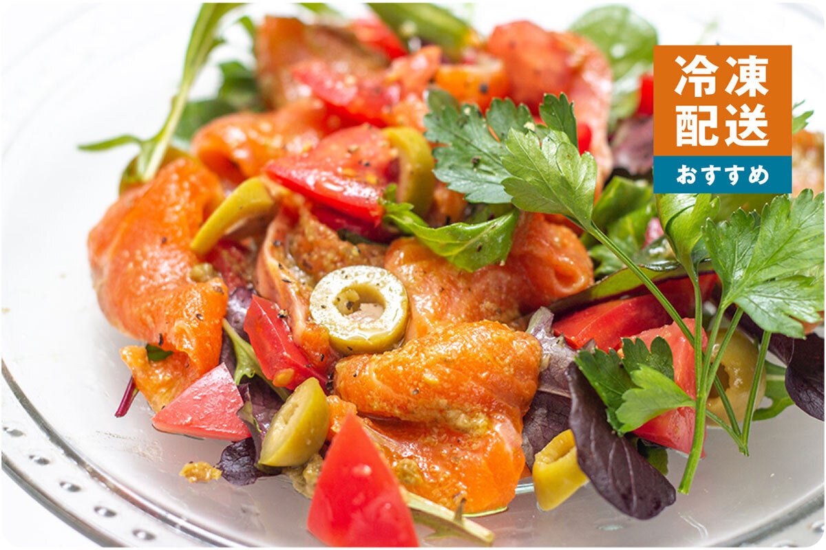 少し厚めにカットしていただくと香味副菜に負けないサーモンの旨味が爆発します!
