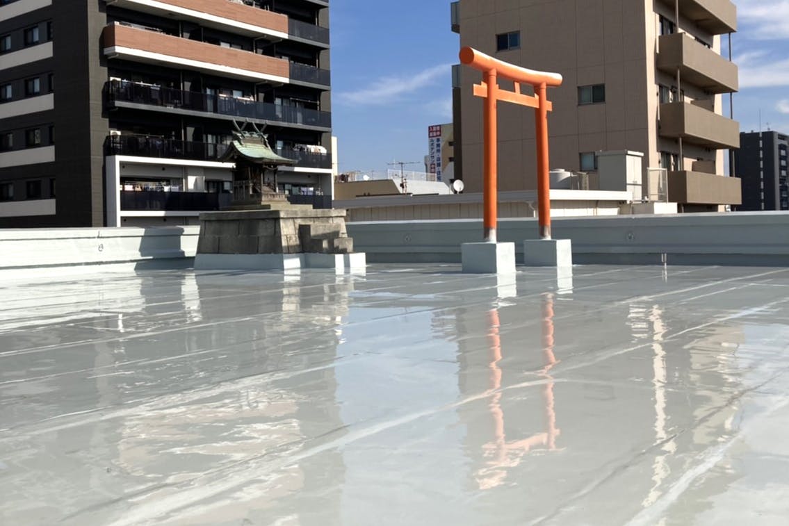 今回の屋上防水工事施工にあたり、ビルのオーナーである尾西繊維協会がお稲荷様修繕の計画と執行をご決断されました。