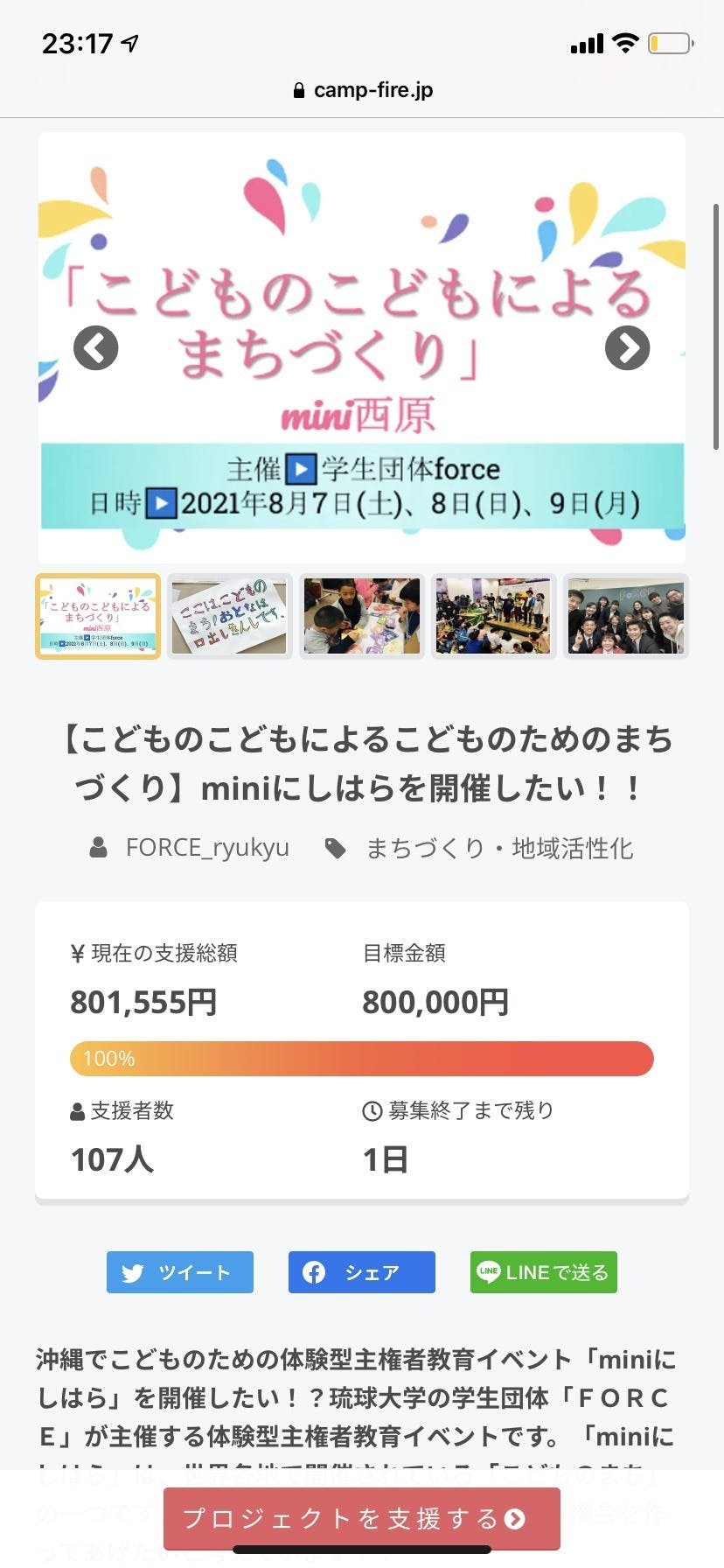 5月25日までクラウドファンディングの支援の募集はしておりますので、拡散、応援のほどよろしくお願いします。