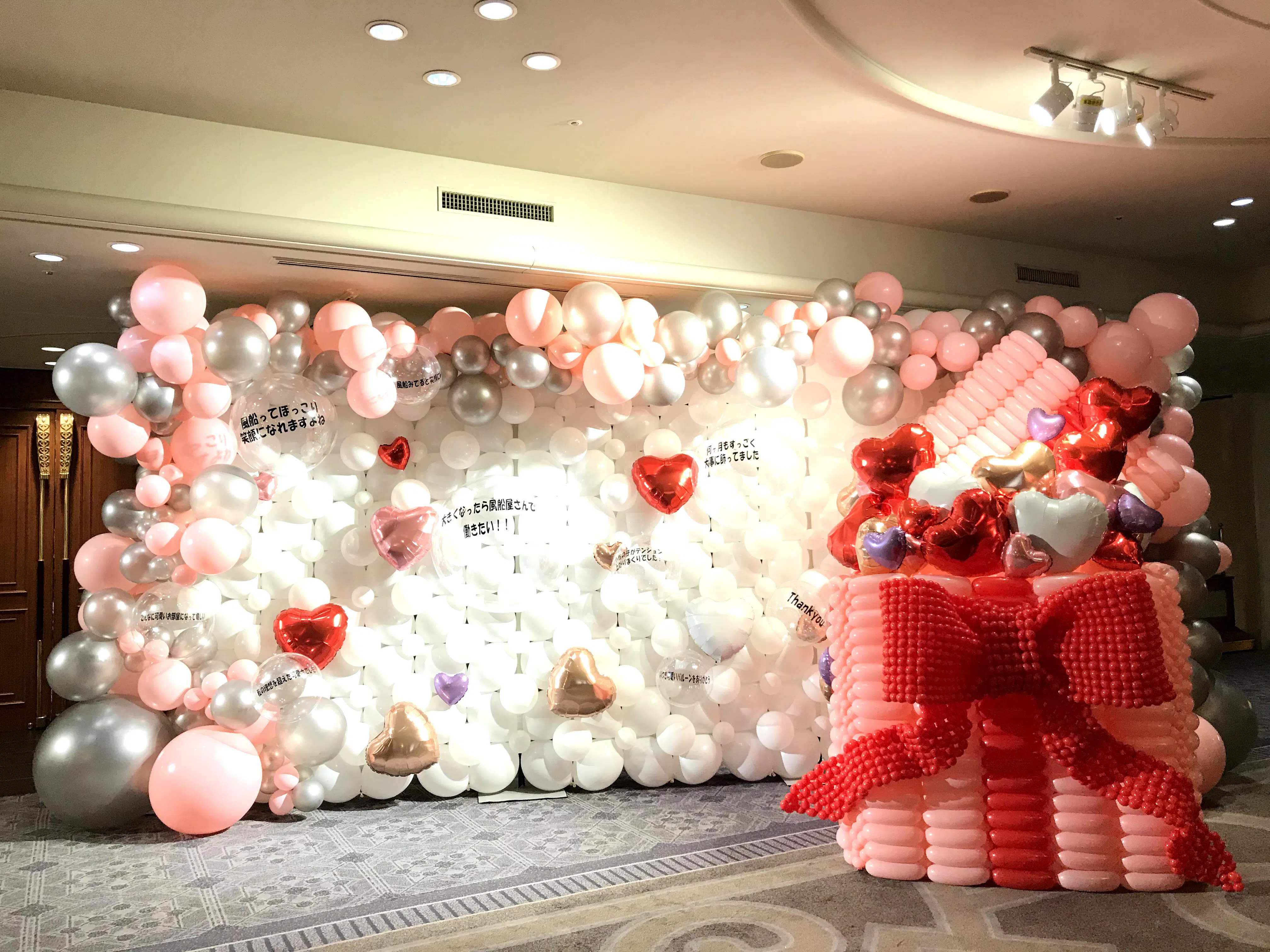装飾はGIFT(ギフト)がテーマだったので、お客様からの嬉しかった声などを集めてクリアバルーンに、お客様からのGIFTとして表現してみましたー