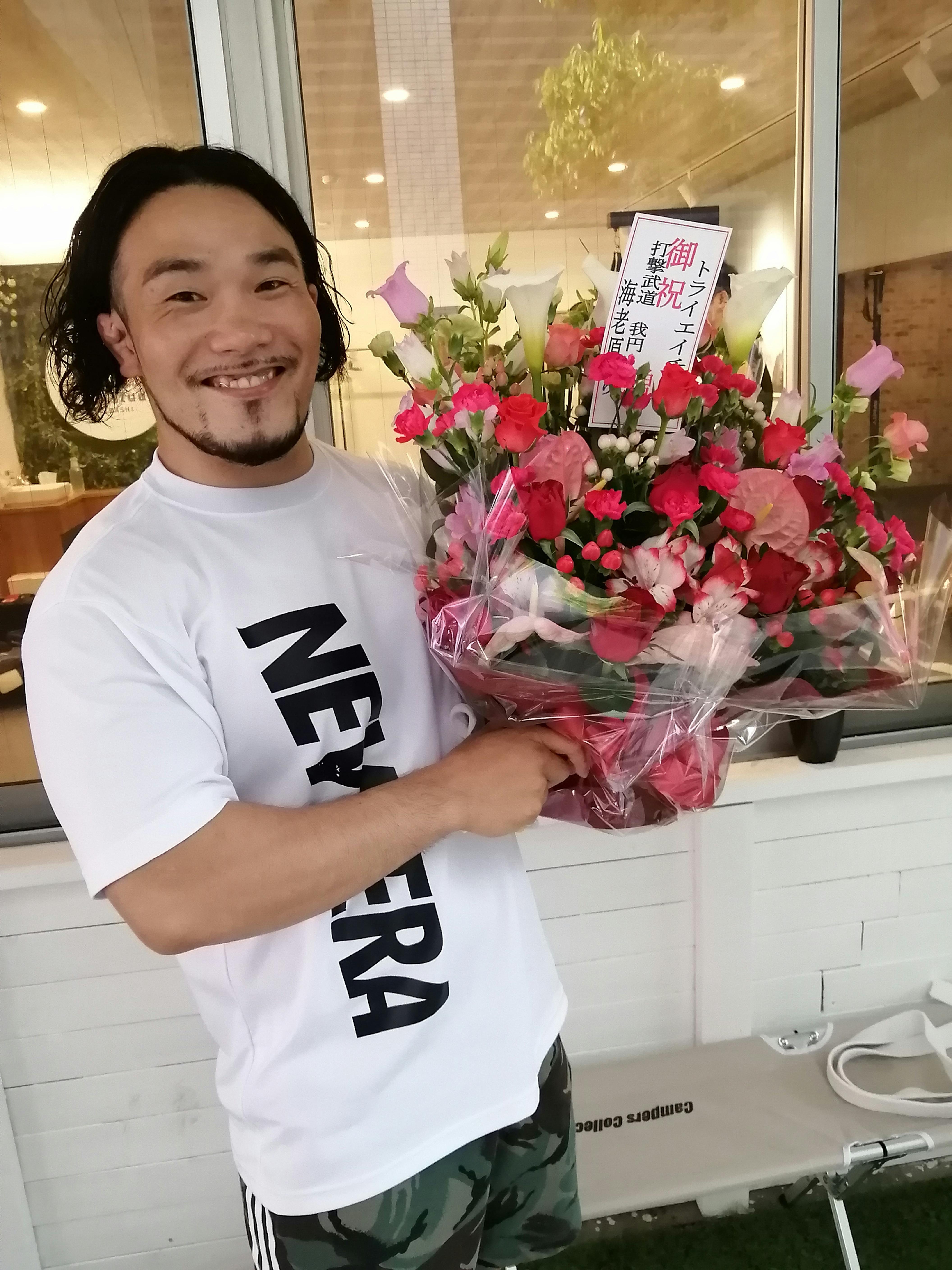 竹村先輩夫婦に開店祝いにお花いただきました!