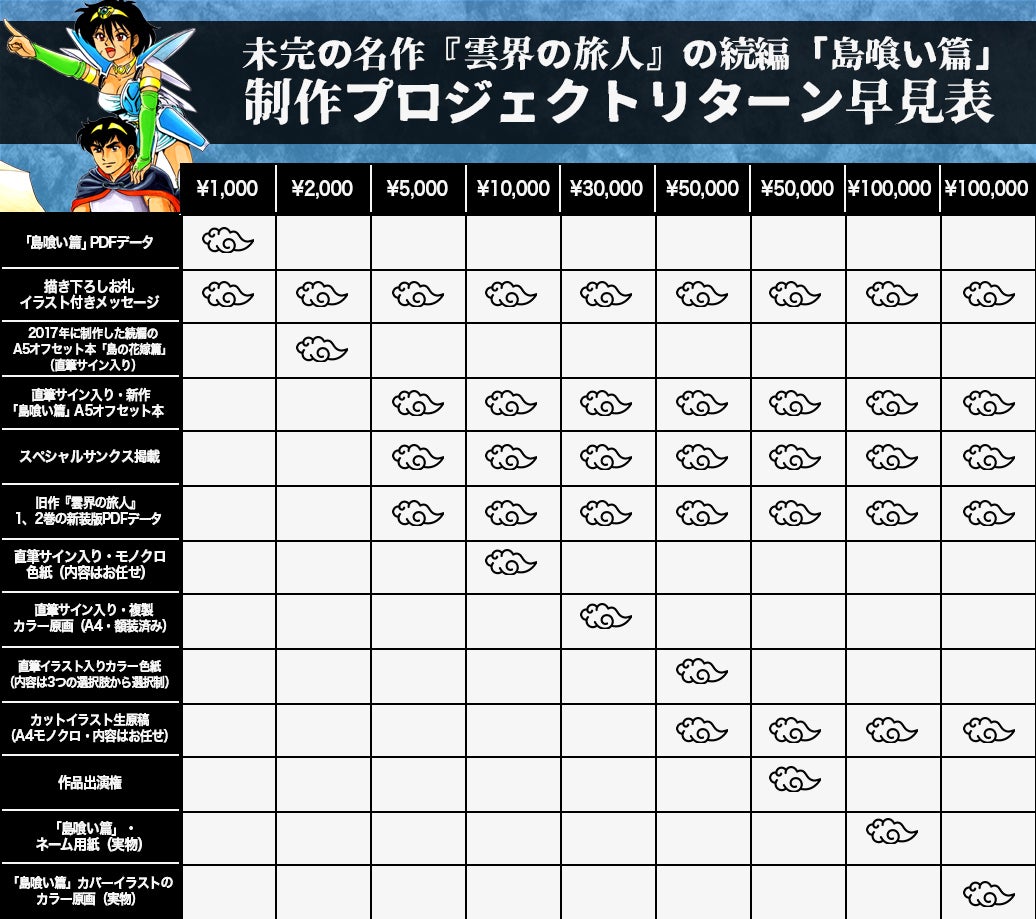 ※リターンは1,000円のコースからございます。今回のクラウドファンディング限定リターンである、直筆サイン入り「島喰い篇」A5オフセット本は5,000円以上のコースについてきます。詳細は後述されているリターン早見表をご確認ください。