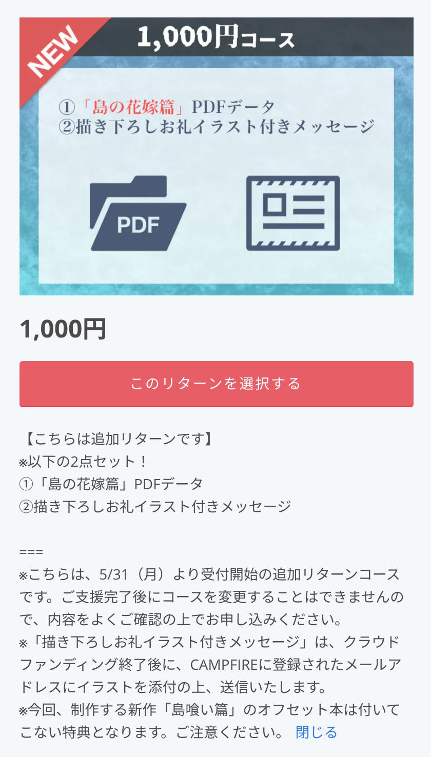先日の5/28(金)にも、本プロジェクトのメインページや、先生および弊社のTwitterアカウントなどで予告をしました通り、多くのリクエストにお応えして、5/31(月)の17時より下記のリターンコースを新たに追加しました!