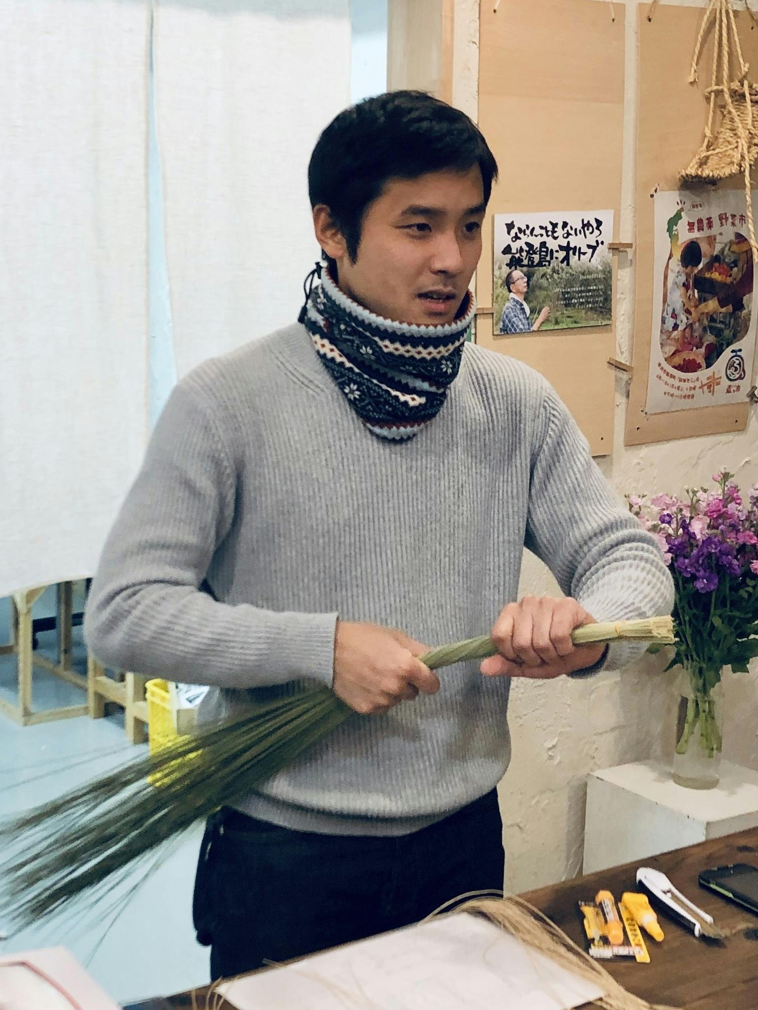 私たち香土カグツチでは、毎年暮れに宮本さんとイ草でリースづくりのワークショップを実施しています。