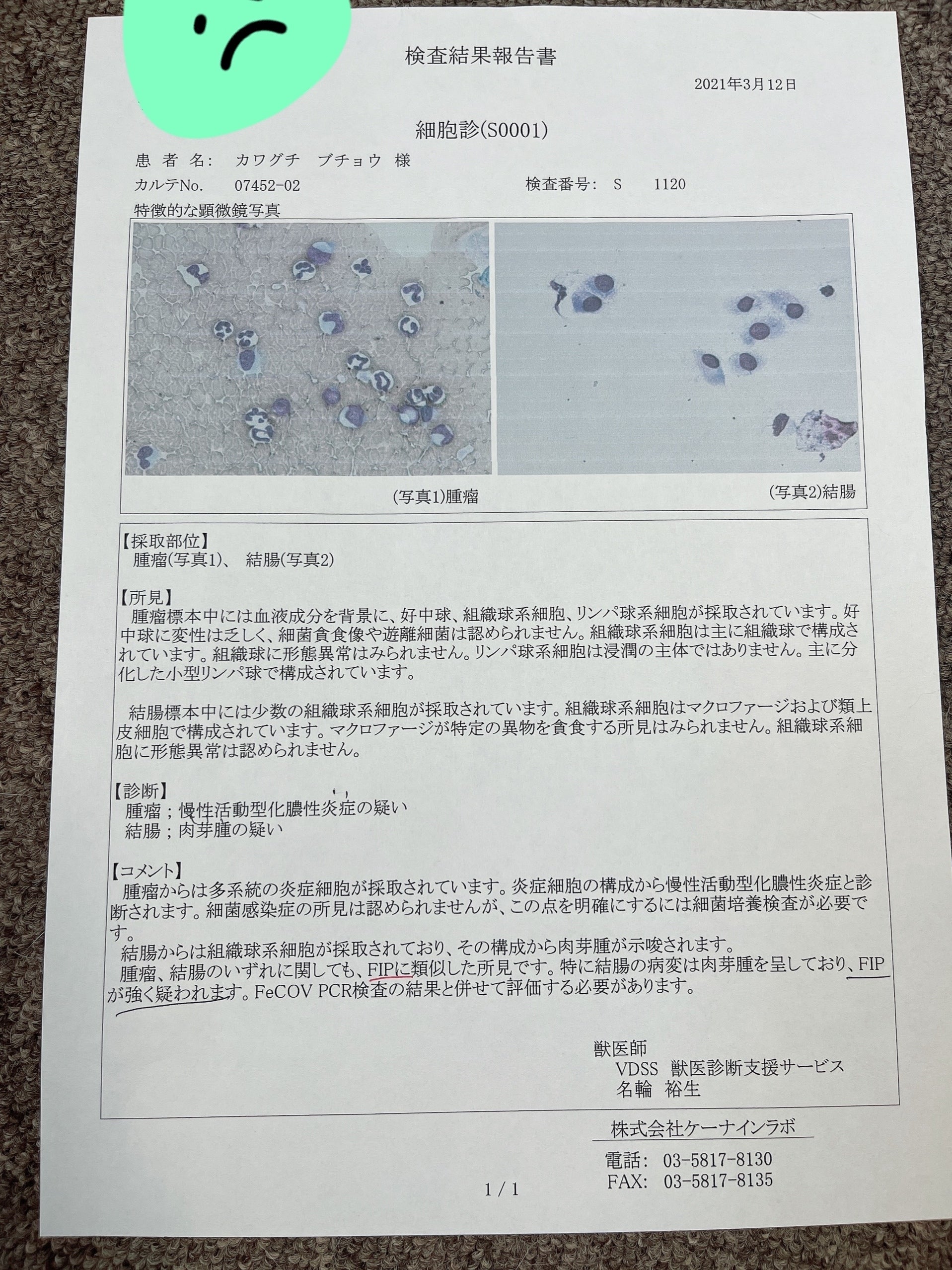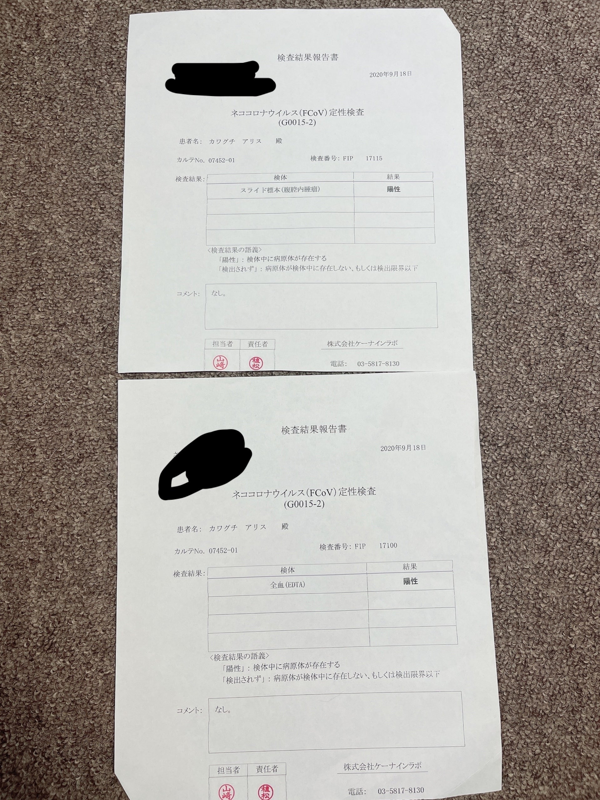 部長ちゃんは検査結果FIPドライタイプが確定し