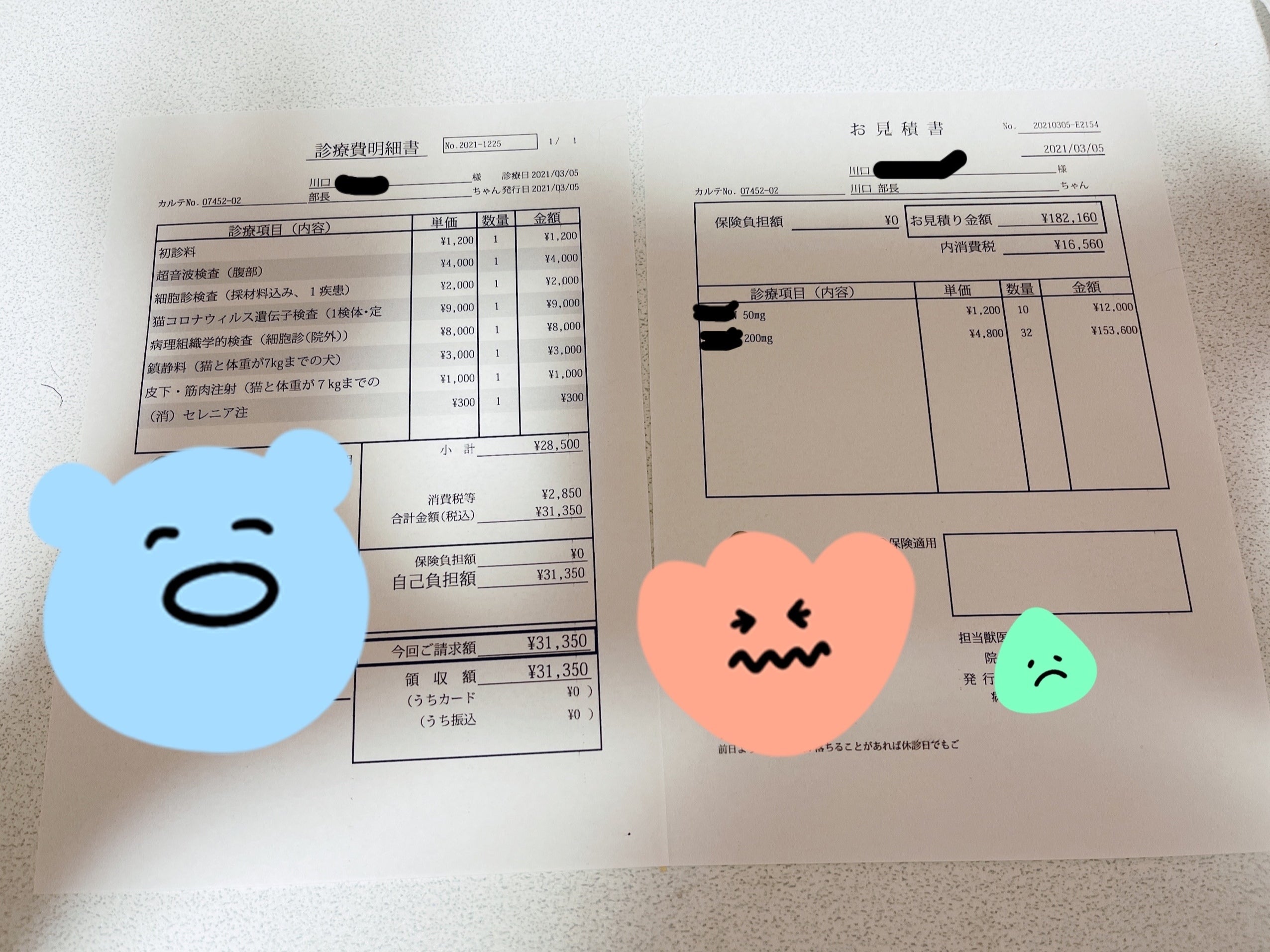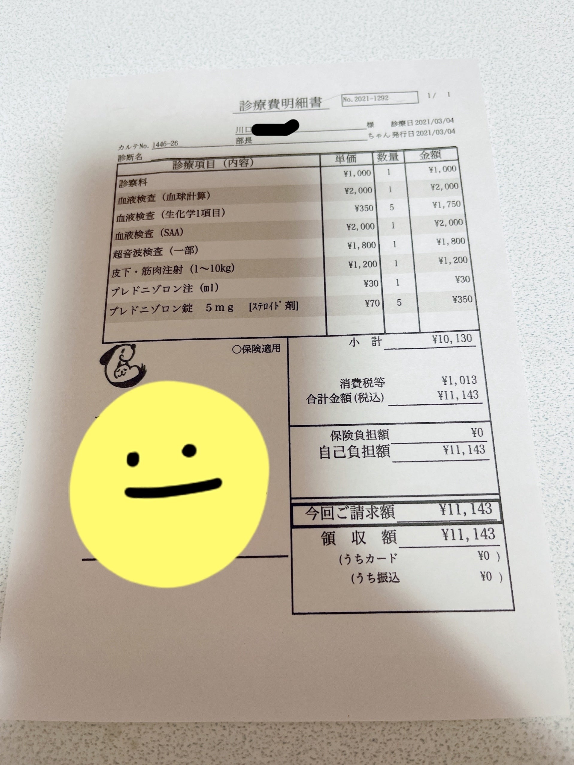 そこでもFIPドライタイプ初見疑いがあると言いわれ、その日はステロイド注射、お薬を処方して貰い帰宅