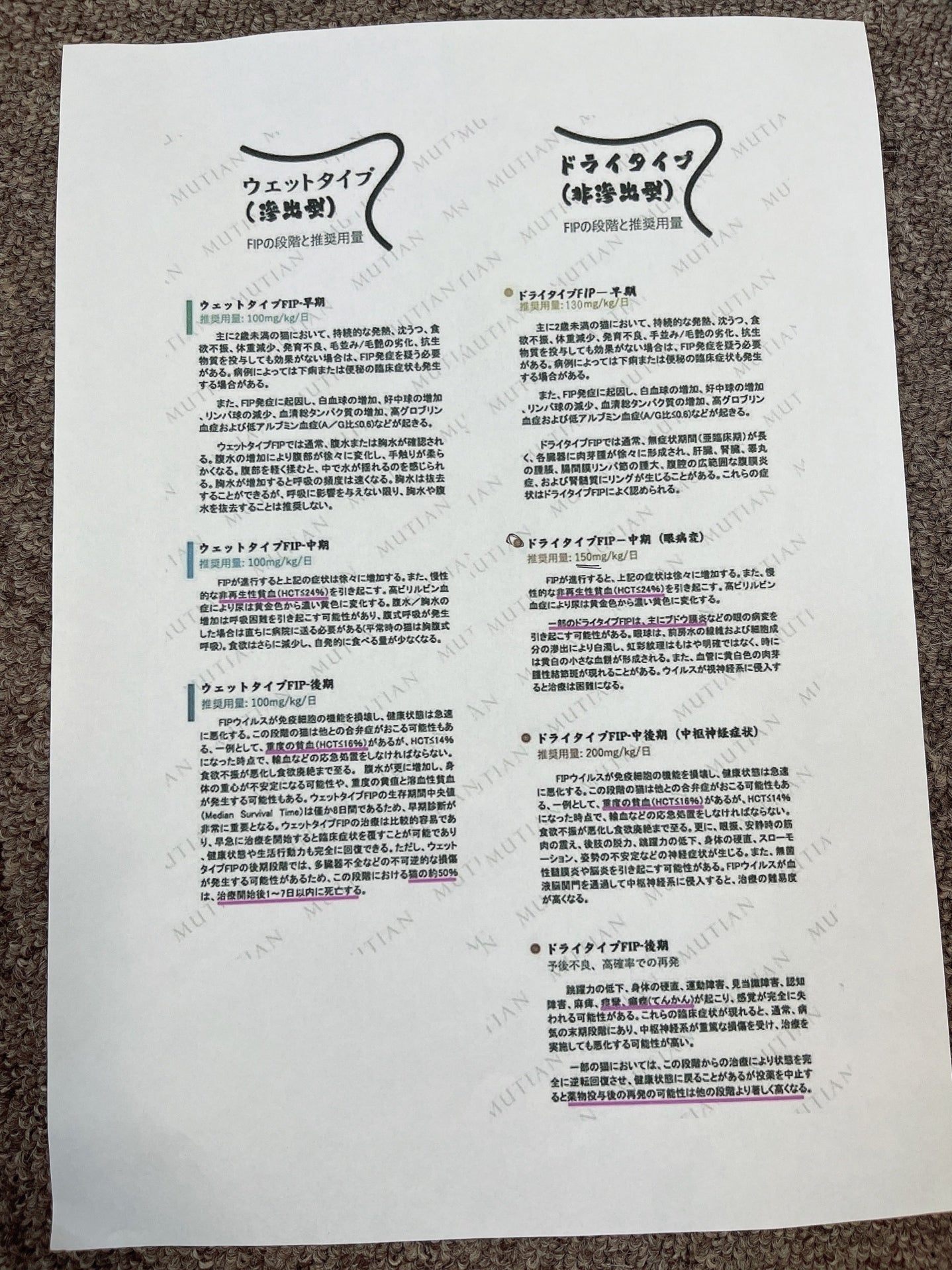 全てのFIPの猫に(MUTIAN)が有効であるという趣旨ではありません。