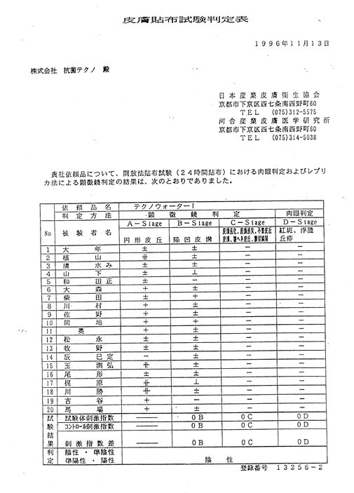 皮膚刺激性試験・成分分析試験