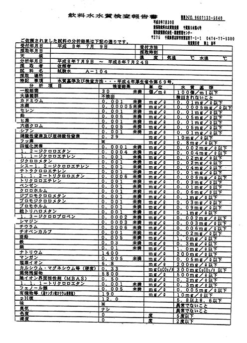 飲料水水質検査報告書