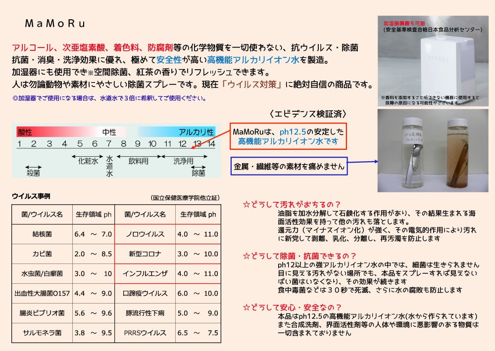 高機能アルカリイオン水のMaMoRuはアルコール除菌を超える除菌力とお肌に優しい
