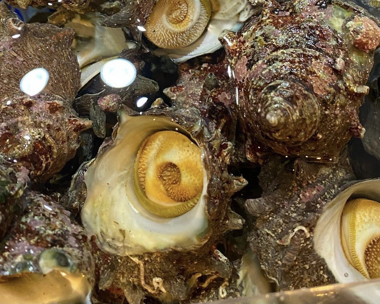 サザエは伊勢志摩の海産物として有名です。肉厚でとても美味しいサザエは神宮の献上品、贈り物、祝い品として用いられています。豊かな海で育ったサザエを、是非一度ご賞味ください。