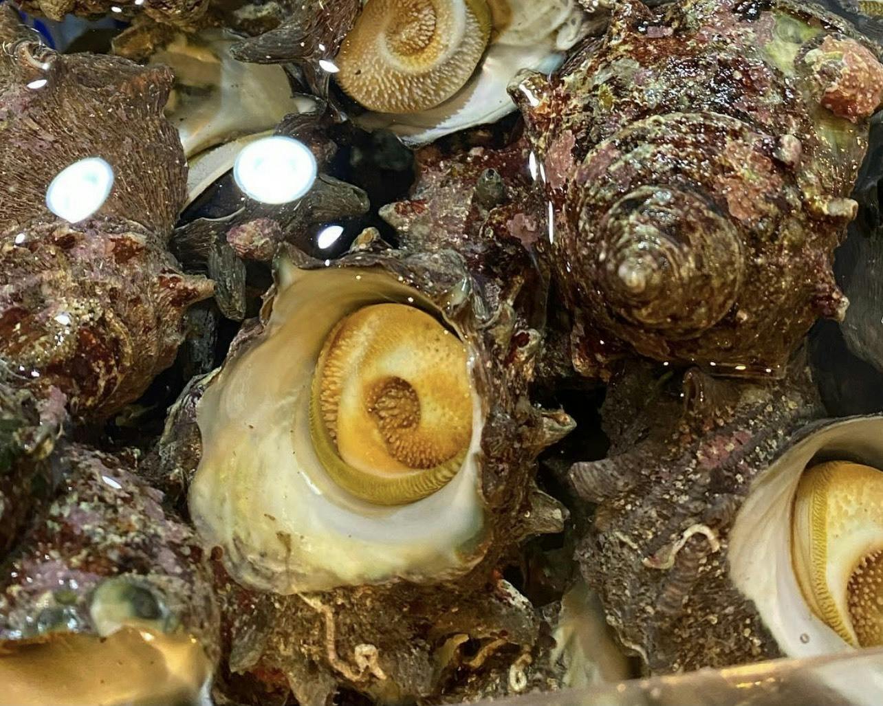 海女さんの手で丁寧に採取されたアワビ。高級海産物の代名詞。料理もさまざまなバリエーションがありますが、シンプルな活き造りや踊り焼きは絶品です。