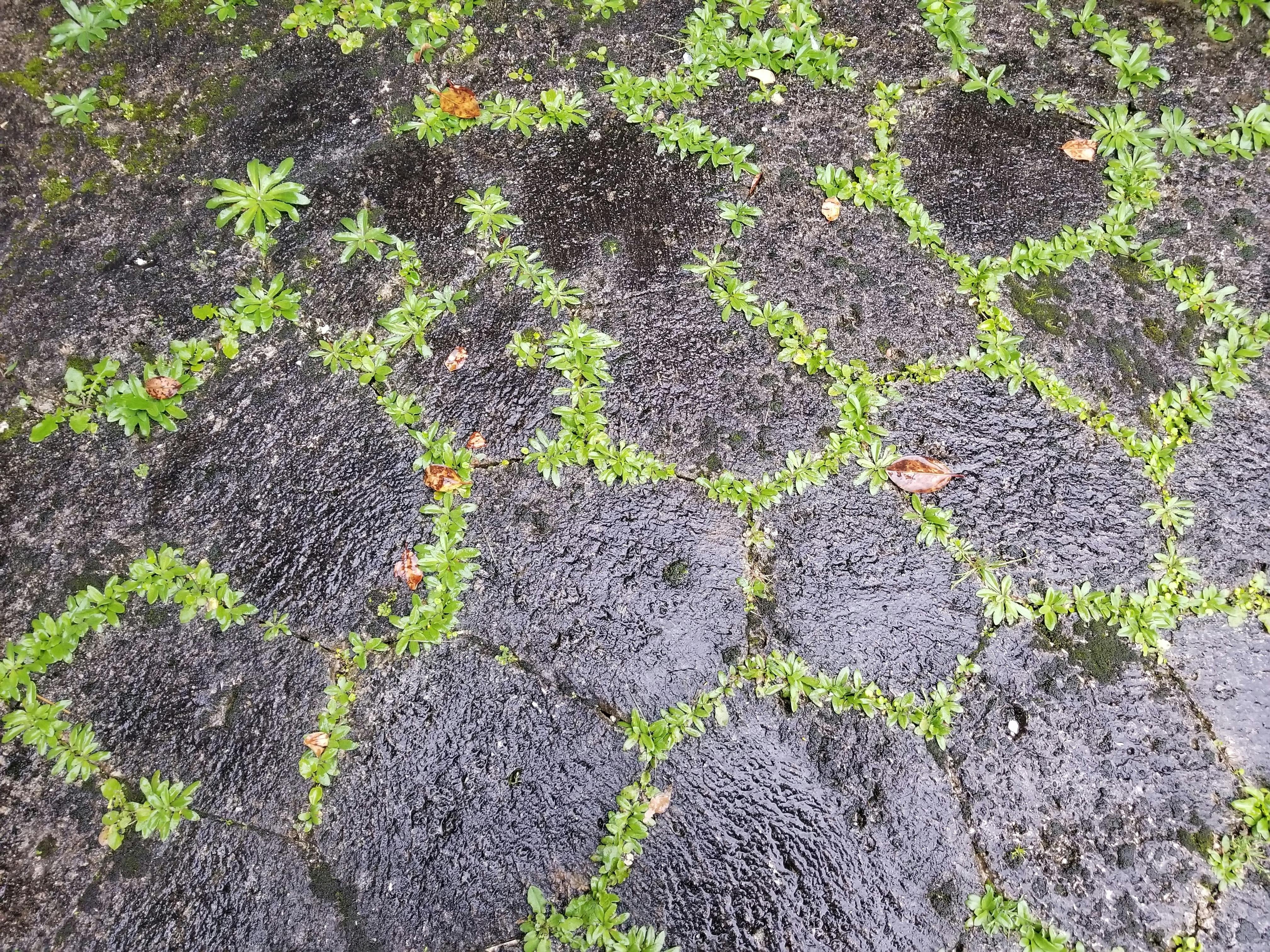 雨の日の首里城も雰囲気があって大好きなのですが、ふと地面を見ると、石畳の形に緑がみずみずしく生えていて、雑草までもが可愛らしく思えました。