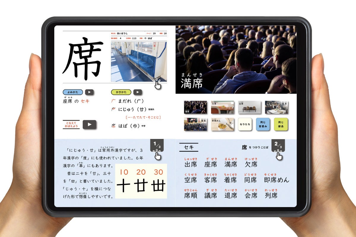 また、2年生の漢字eブックはすでに発売中です。サンプル版で立ち読みが可能なので、下記リンク先からアクセスして、ぜひ触ってみてください(iPhoneでも立ち読み可能です)。