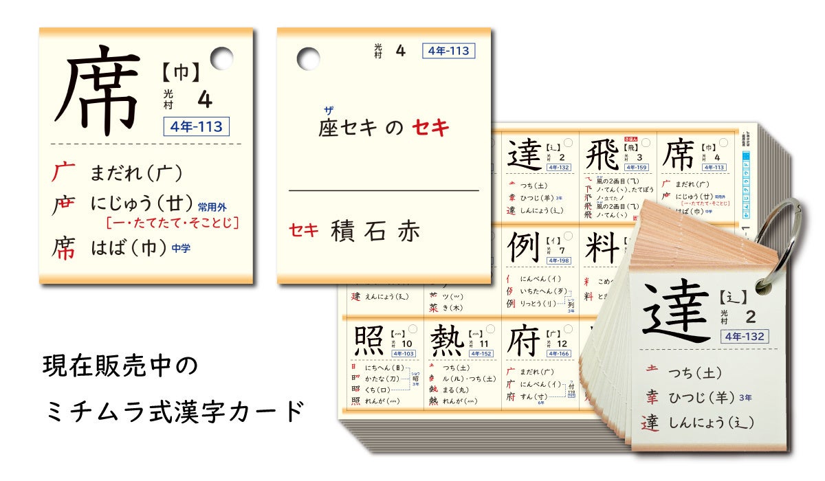 そうした漢字の読み書きが苦手な子どもたちのために、ミチムラ式漢字学習法ではこれまで、漢字一字の読み書きを簡単に覚えられる漢字カードを製作・販売してきました。