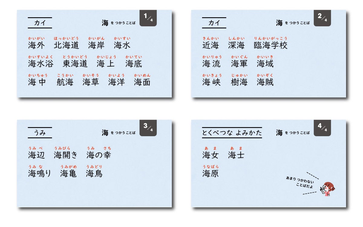 これだけの情報量を含む漢字の学習教材は、おそらくこれまでなかったでしょう。