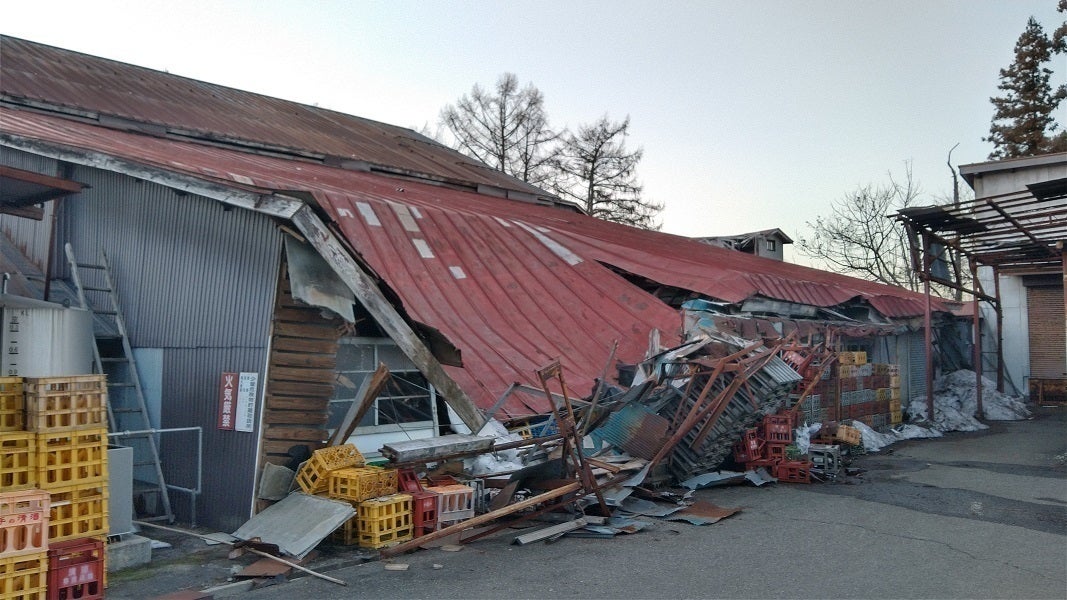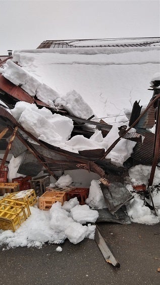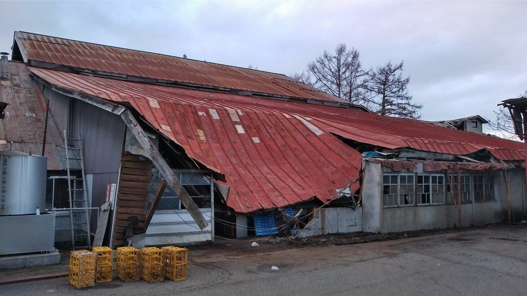 今回の雪害と地震で最も被害が出たのは洗瓶機を置いている部屋で、そこの屋根が潰れてしまった為、洗瓶作業が行えず、今年搾った新酒の瓶詰めが出来ない状況に陥っています。