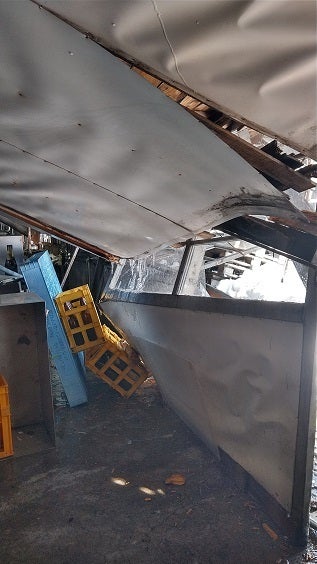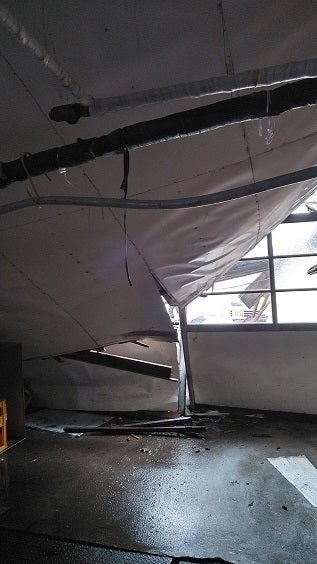 洗瓶室は手が届く高さまで天井が落ち、配管も破損しました。