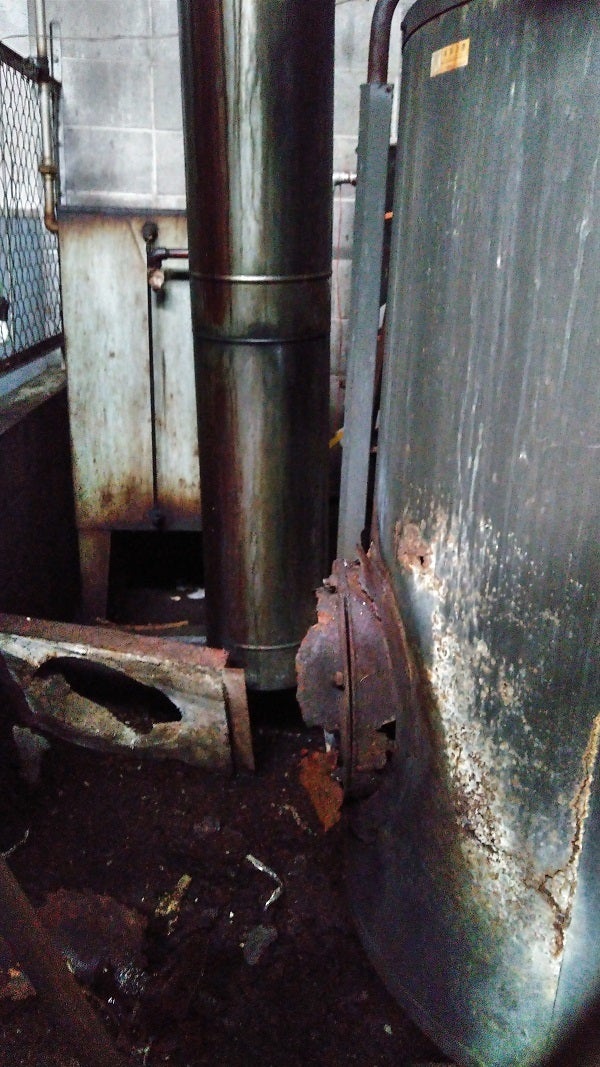 ボイラーの煙突も破損しました。