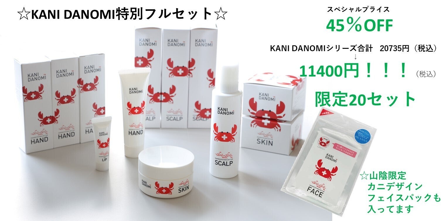 KANI DANOMI スカルプケア(120ml)×1本+[ハンドケア(50g)、リップケア(10g)、スキンケア(100g)、山陰限定フェイスパック(1枚入り)各1個]
