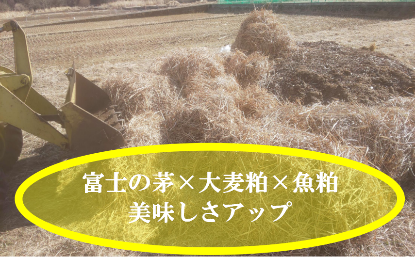 富士桜高原麦酒からでた栄養たっぷりの大麦粕・富士周辺からとれる微生物がたっぷりの富士の茅・そこに旨味の魚粕をプラスし地域にある恵みを使いながら特別な甘さのある富士恵味を育てています