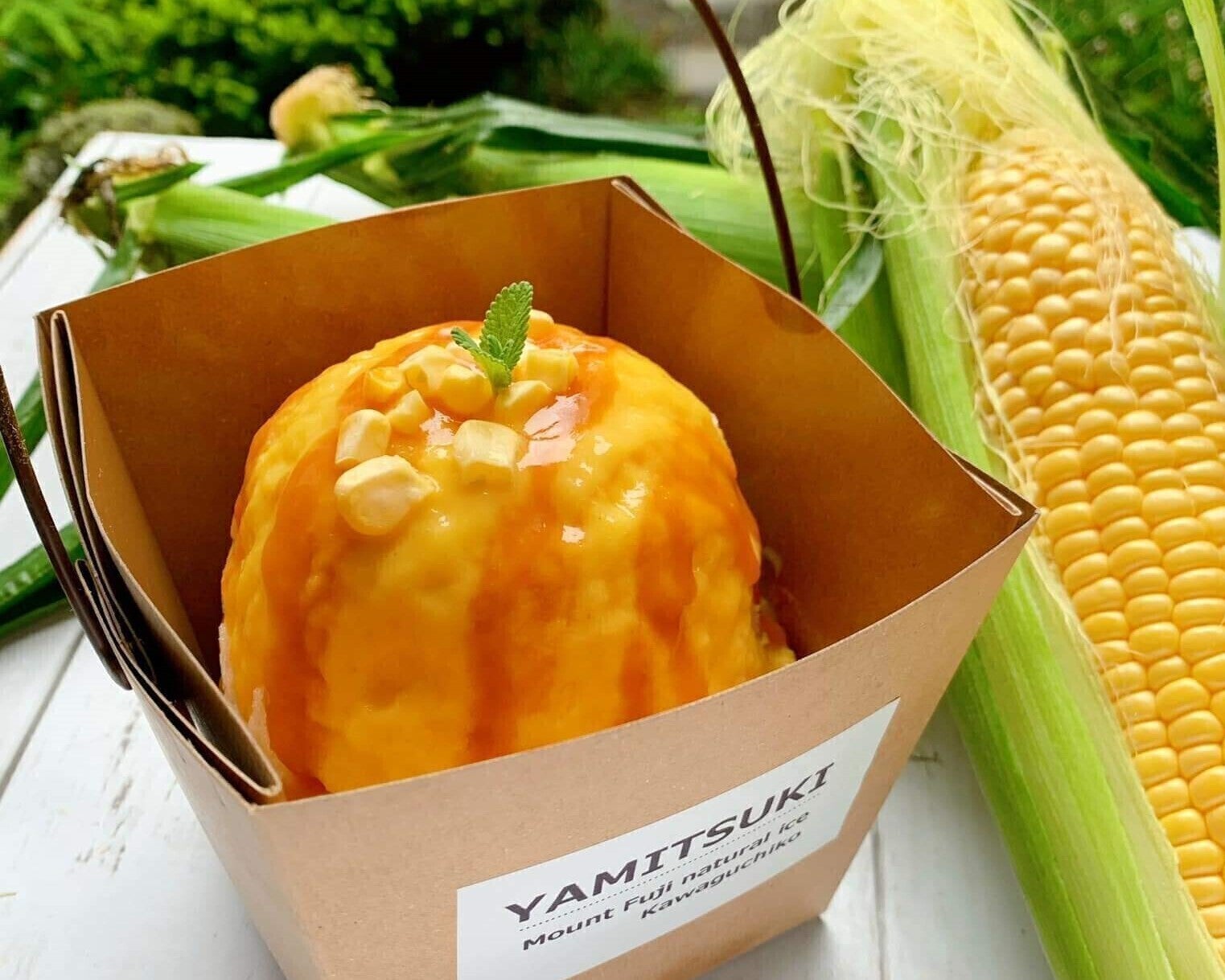 とうもろこしを使った富士山の天然氷のかき氷