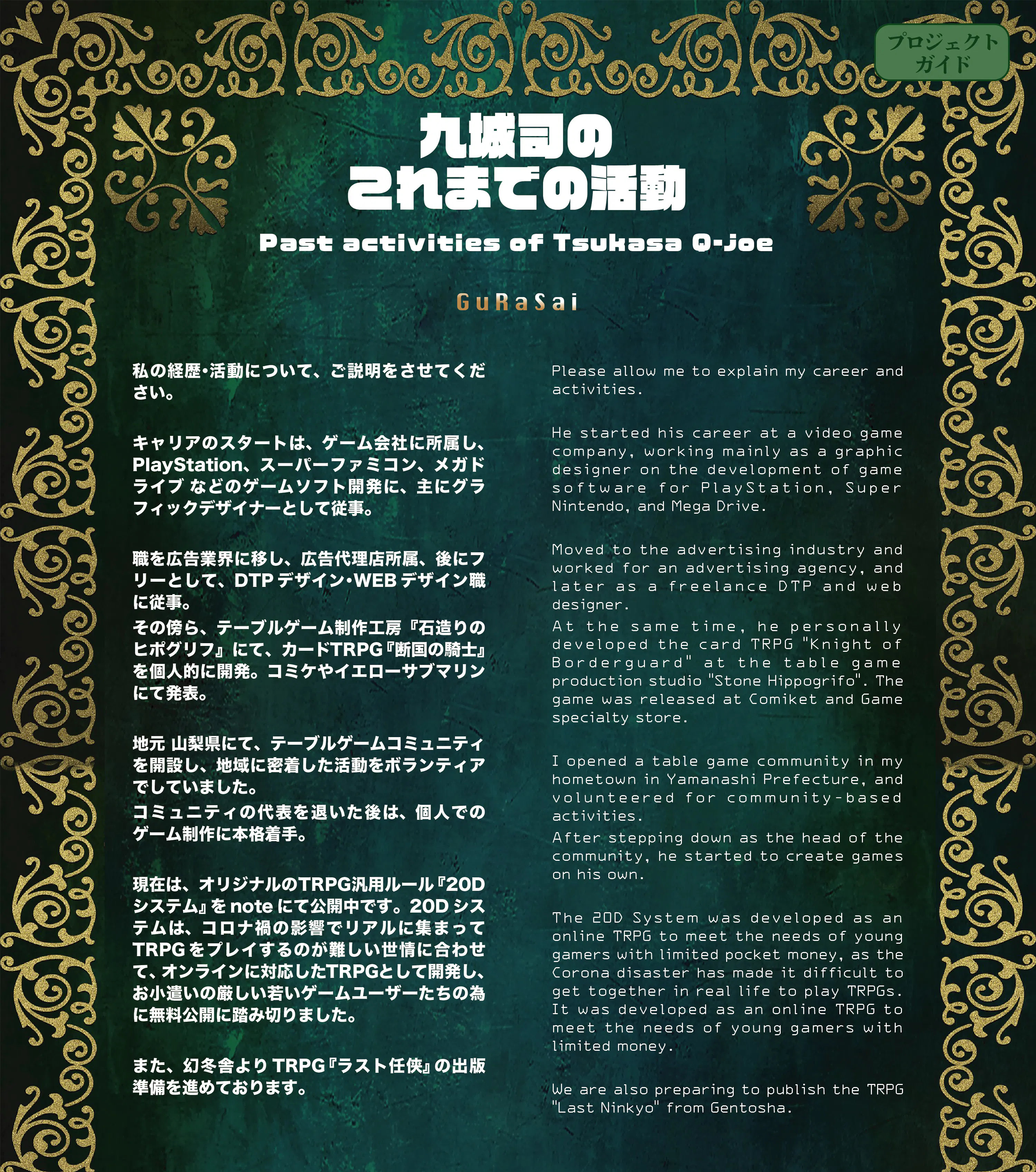 企画・ゲームデザイン:九城司(石造りのヒポグリフ)