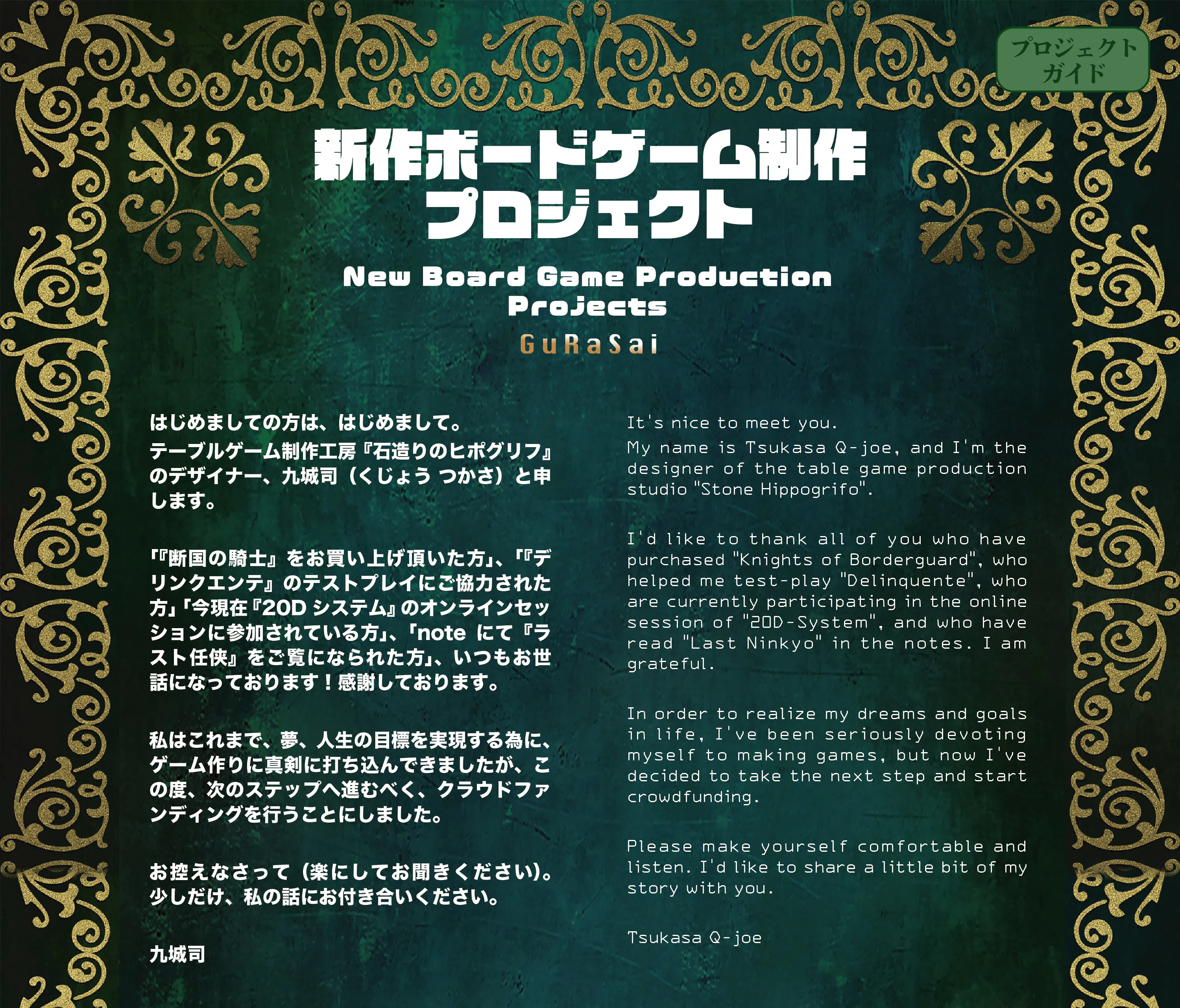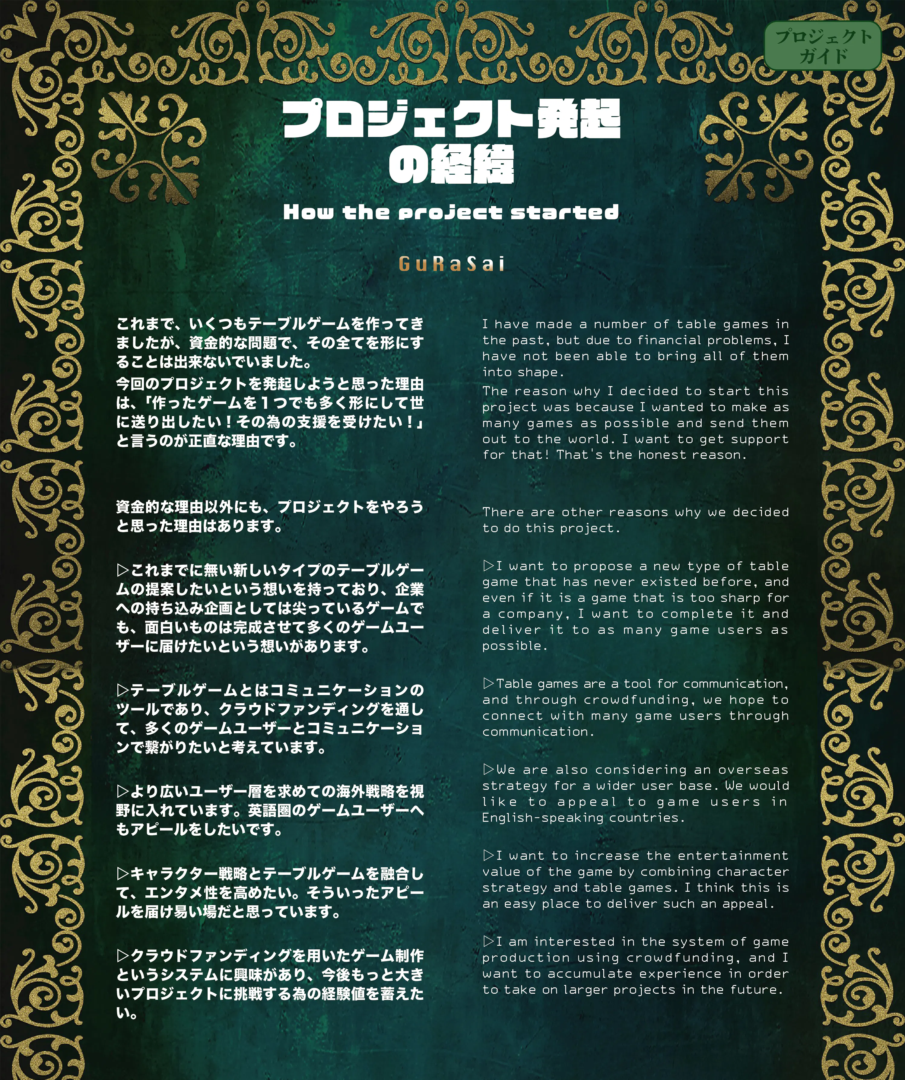 ・ゲーム内容だけ知りたい方は、『プロジェクトガイド』と記されたページを飛ばしてご覧ください。