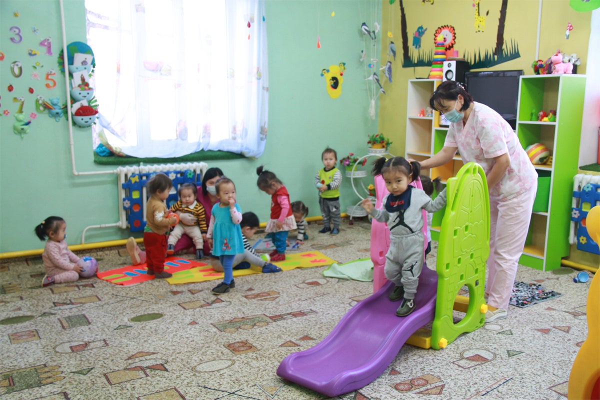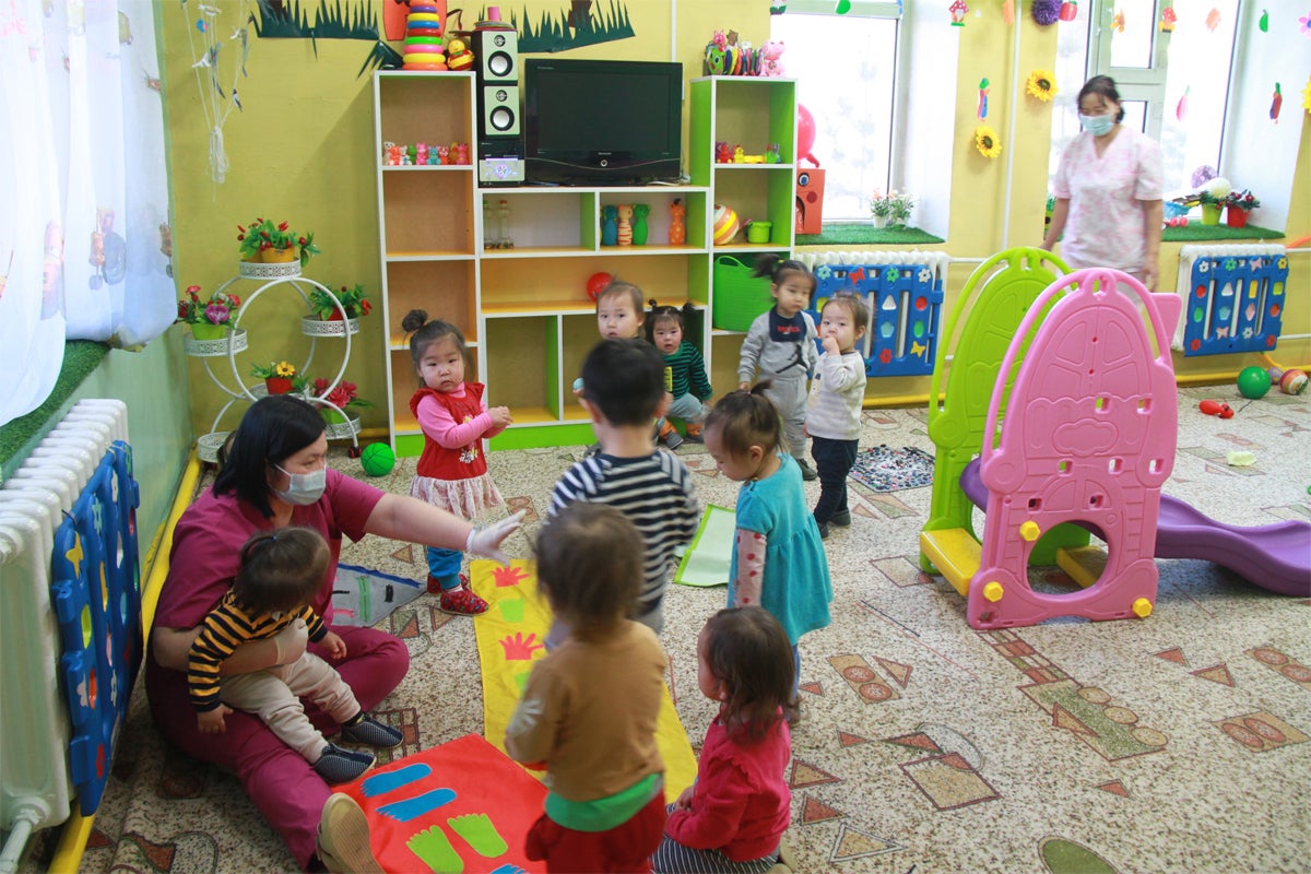 ブルガン市が運営する保育園には、所得の低い家庭の子供や孤児、障がいのある子供、障害のある親をもつ子供、1~2歳になる40人の子供達を受け入れてお世話をしています。現在はベッドなどが足りなくて20人が待機しており、入園できない状況です。