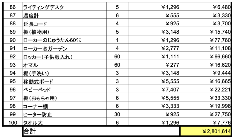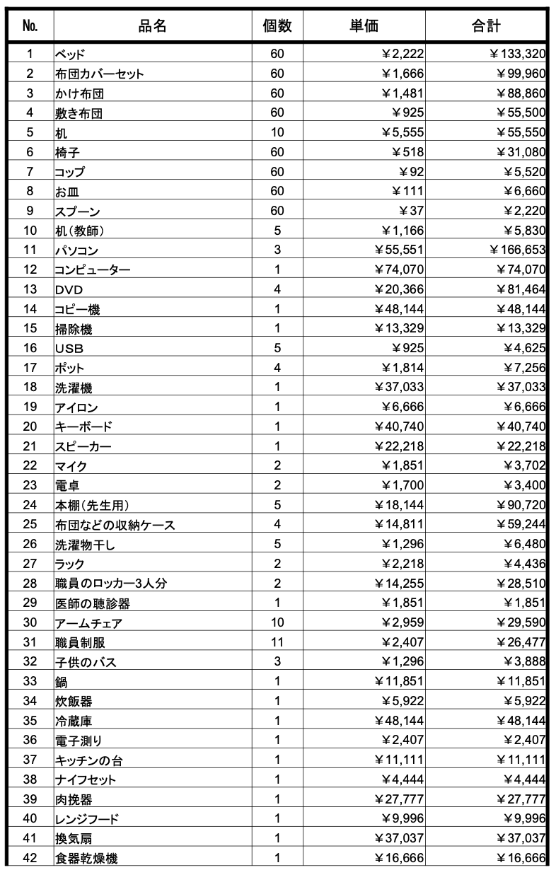 乳幼児60人が快適に過ごせる保育施設で何が必要か、リストを現地のスタッフに作ってもらいました。ご支援いただいた資金は、ベッドや布団、車椅子など、リストから優先順位をつけて、物資支援に活用させていただきます。