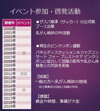 当会は学術的なことのほかに、一般の方に対しても乳がんやマンモグラフィについての啓発活動を行ってまいりました。