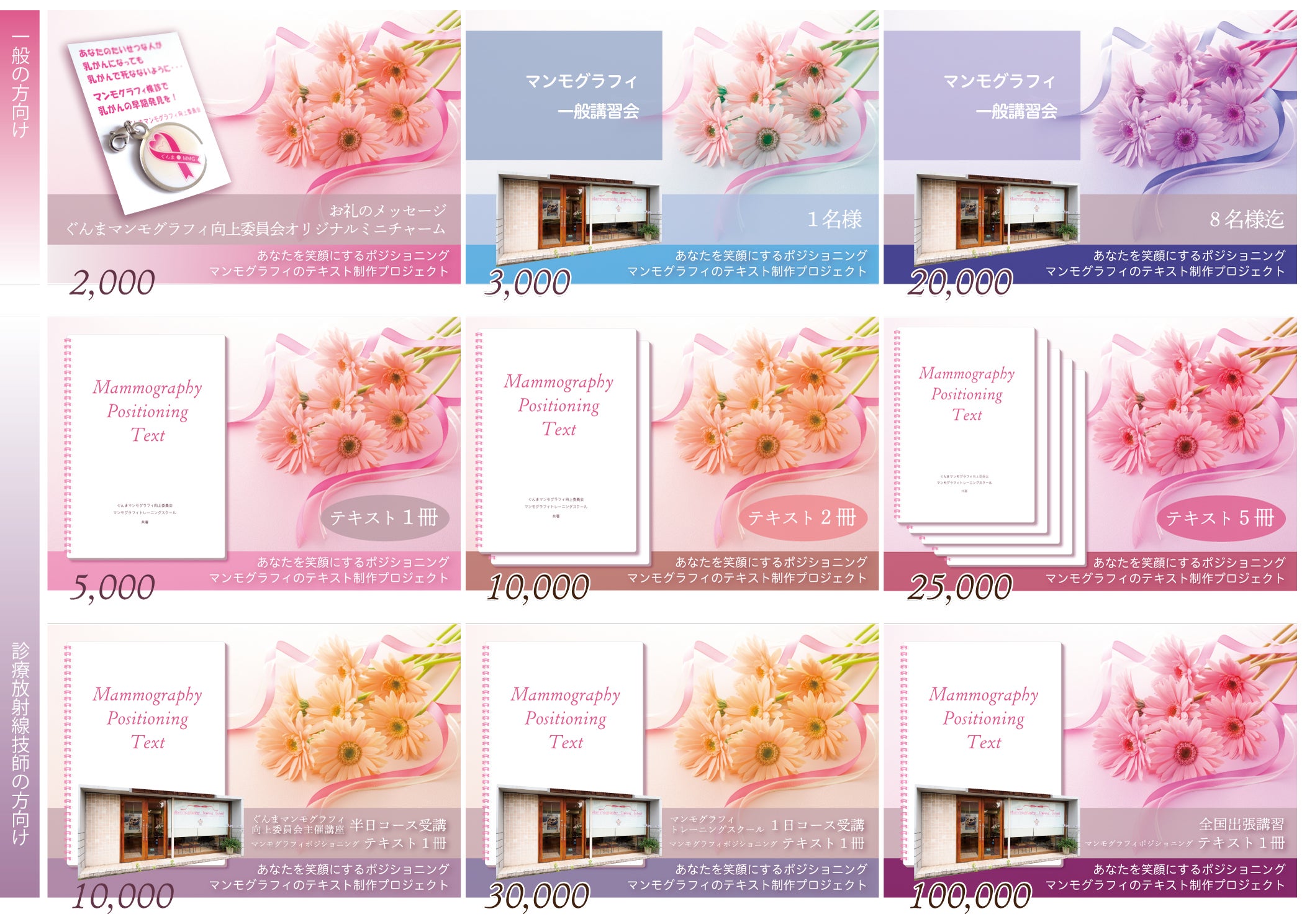 ⑧マンモグラフィトレーニングスクール主催講習会つきテキスト1冊:30,000円