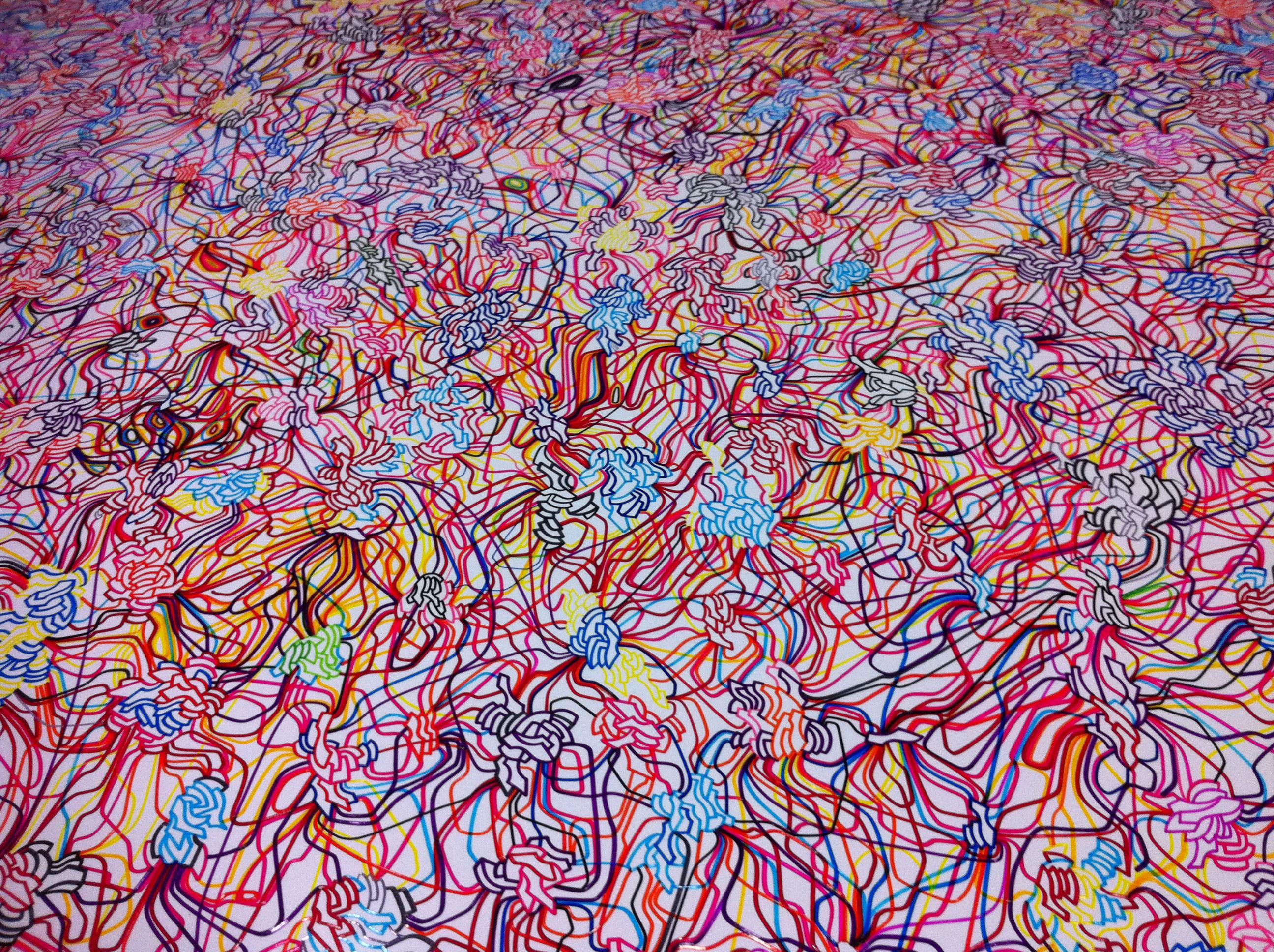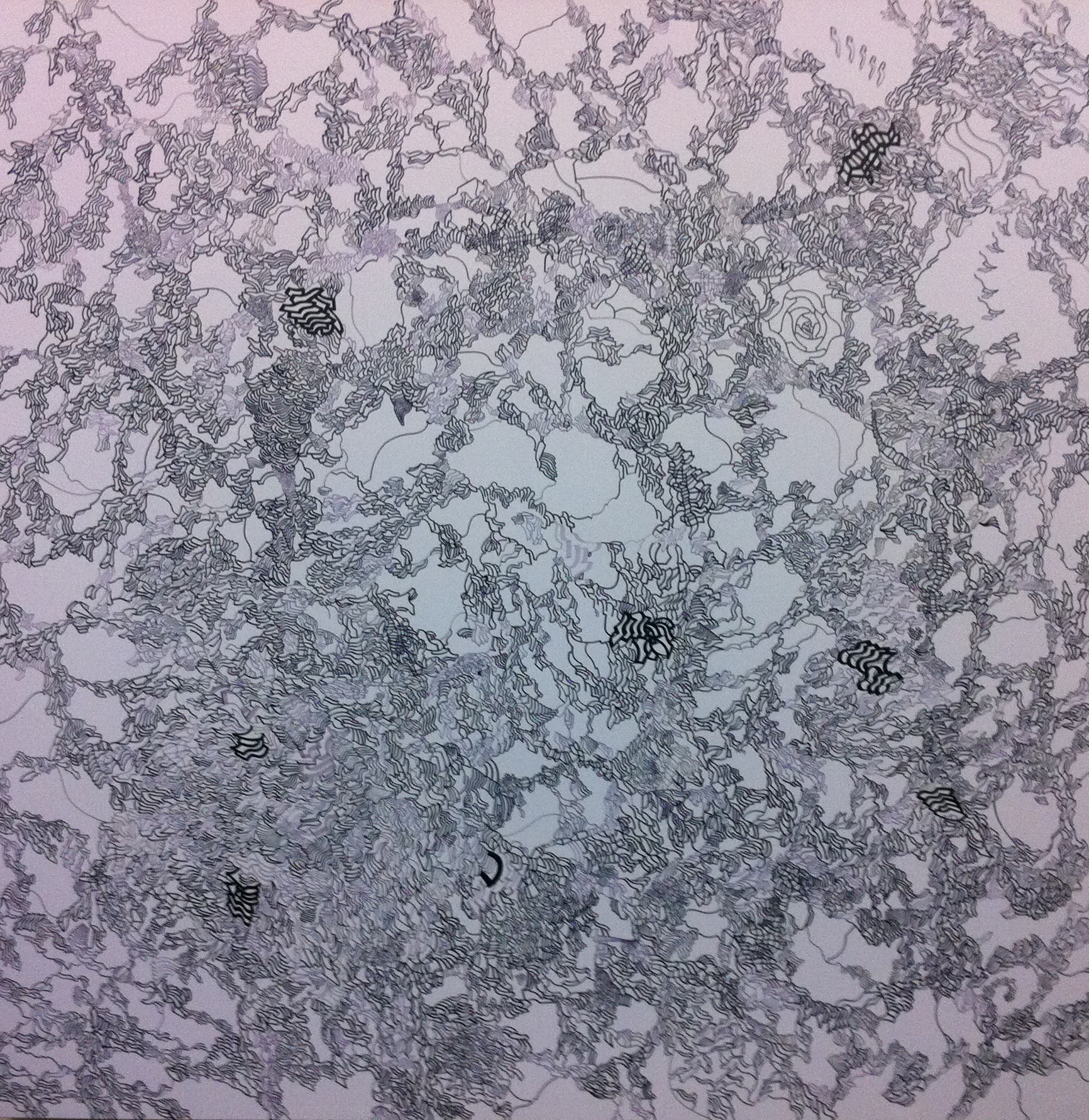 期間中毎日、壁面と床面などにドローイングを行い、画面を上書きし続け、その模様をインターネットを通じて生中継するプロジェクト。