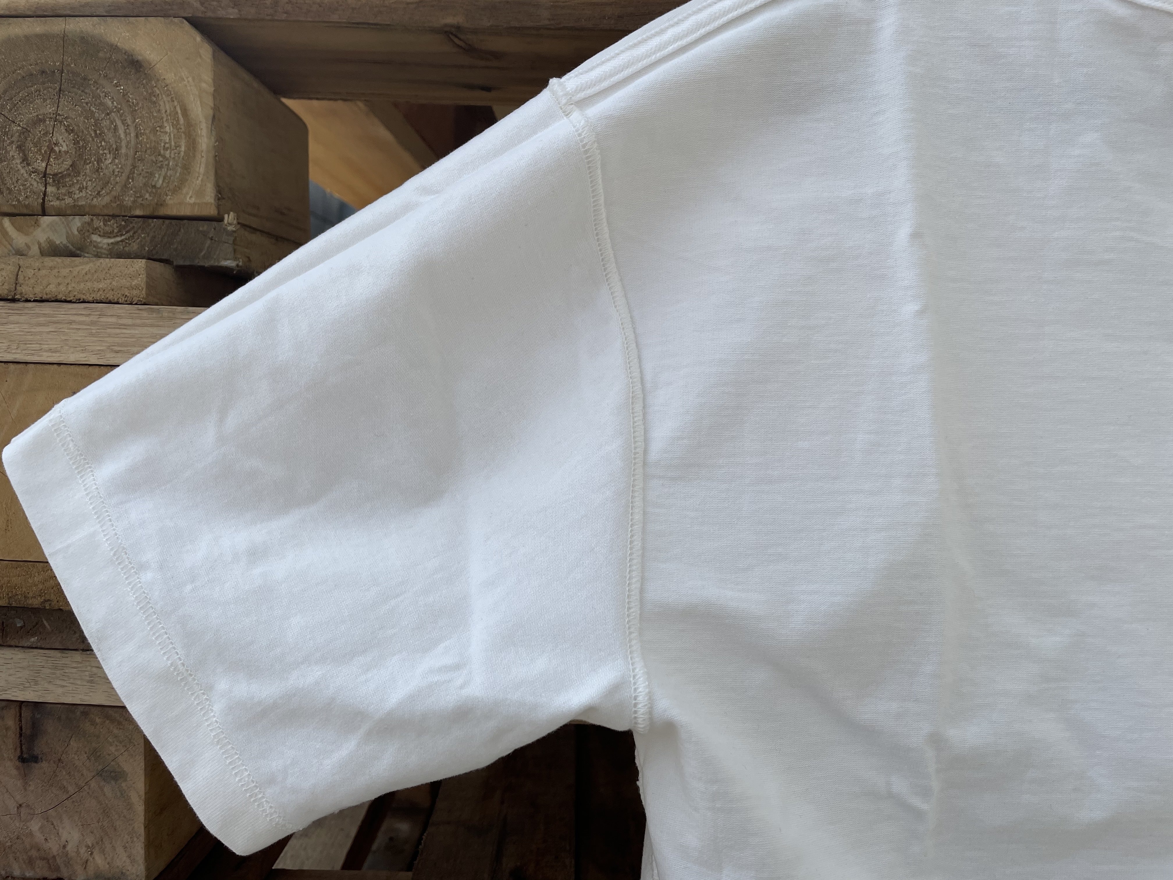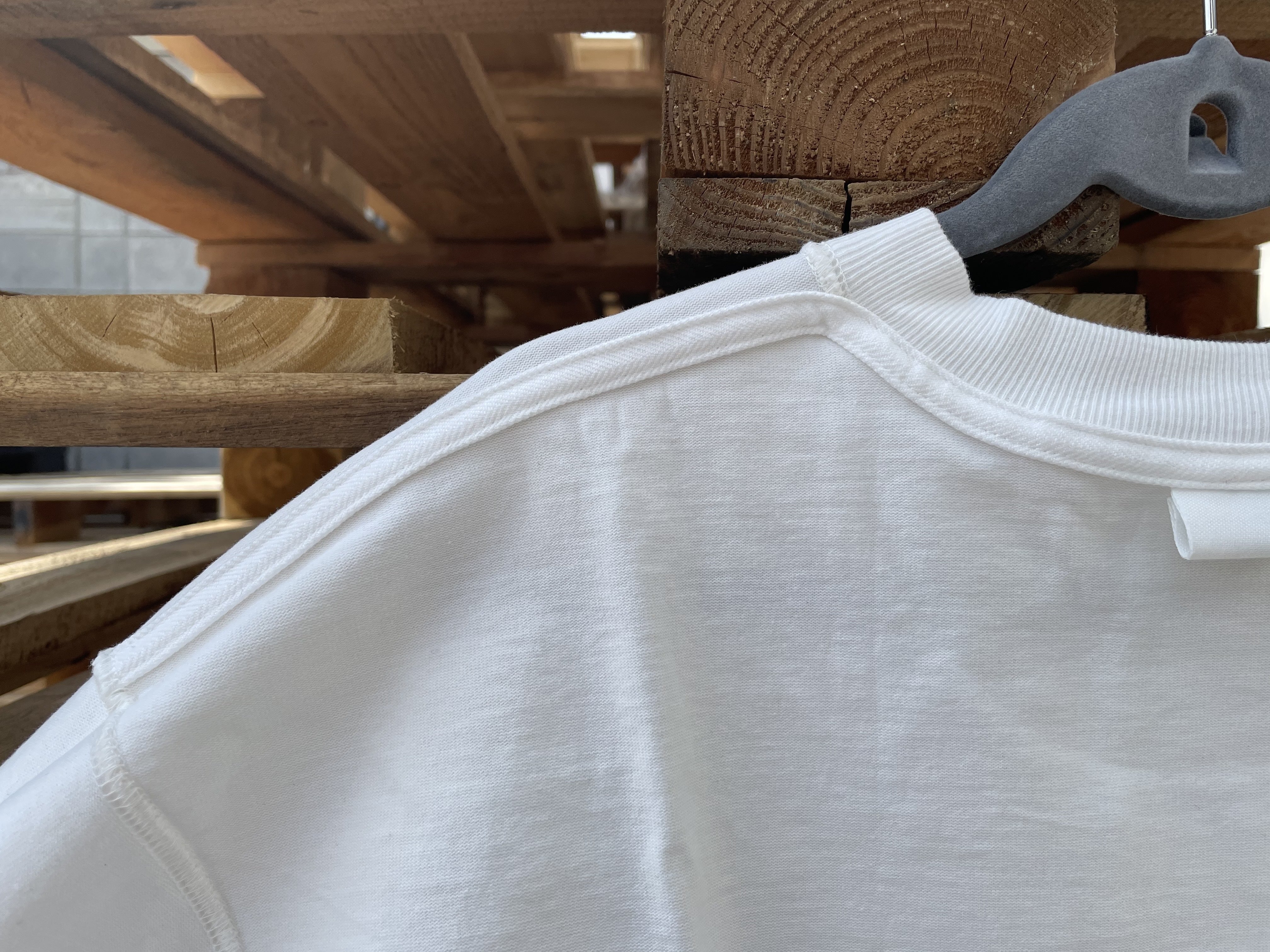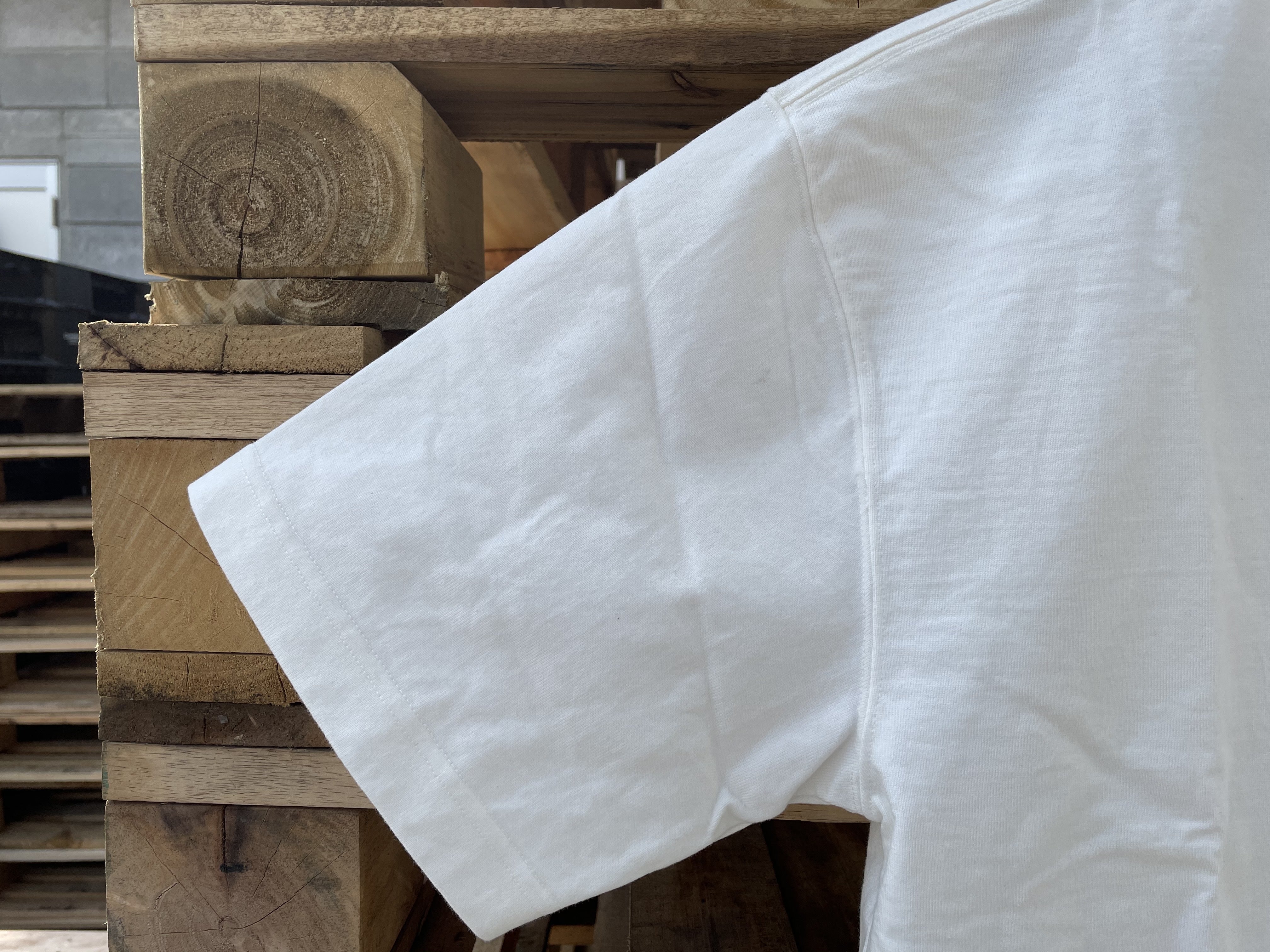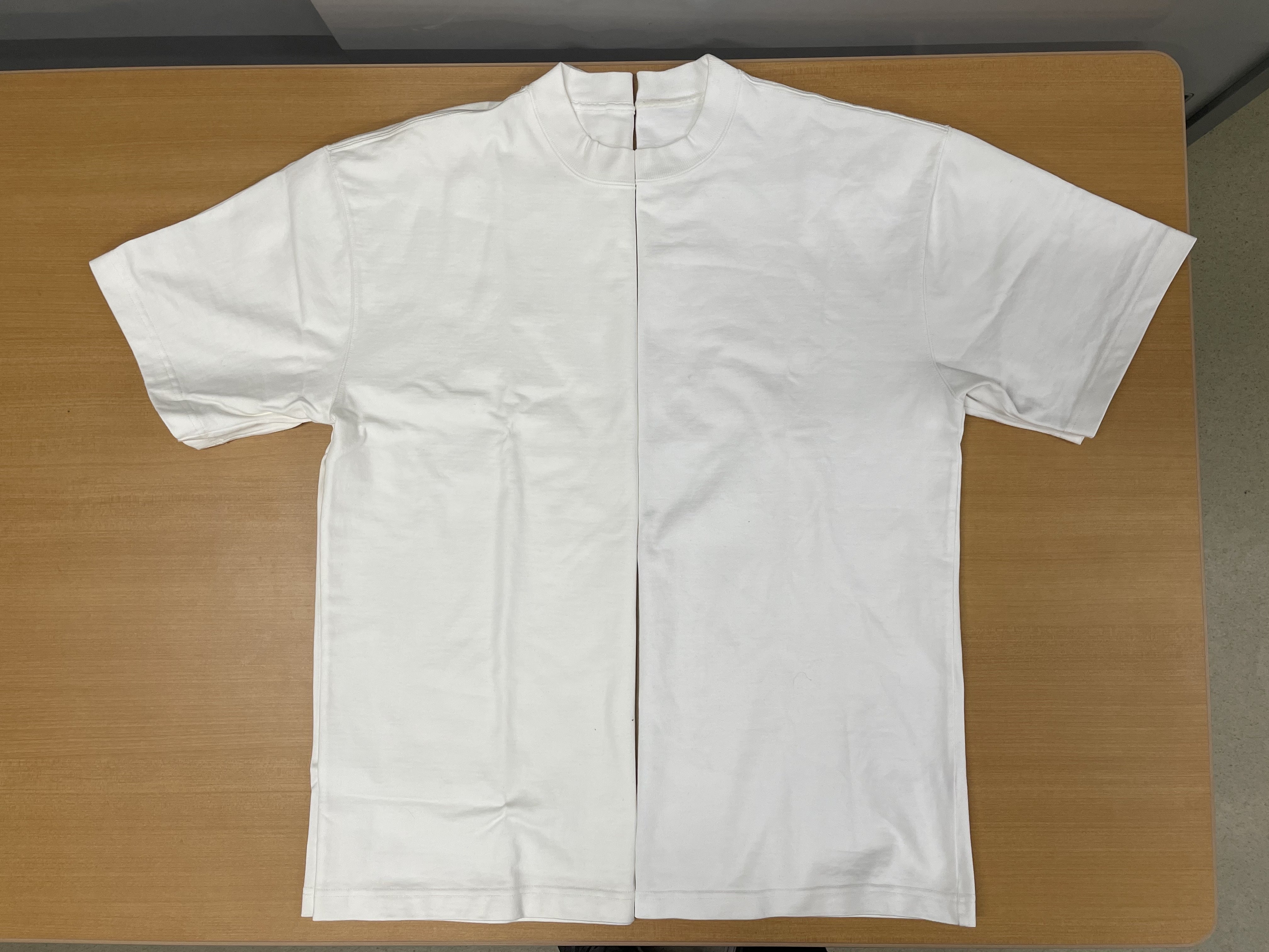 本プロジェクトでは「捨てられないTシャツ」をコンセプトにしているため、生地は分厚い方が良いと考えましたが、分厚すぎることで着心地が悪るくなることが判明したため、着心地に配慮した生地の厚みを研究しました。それはー