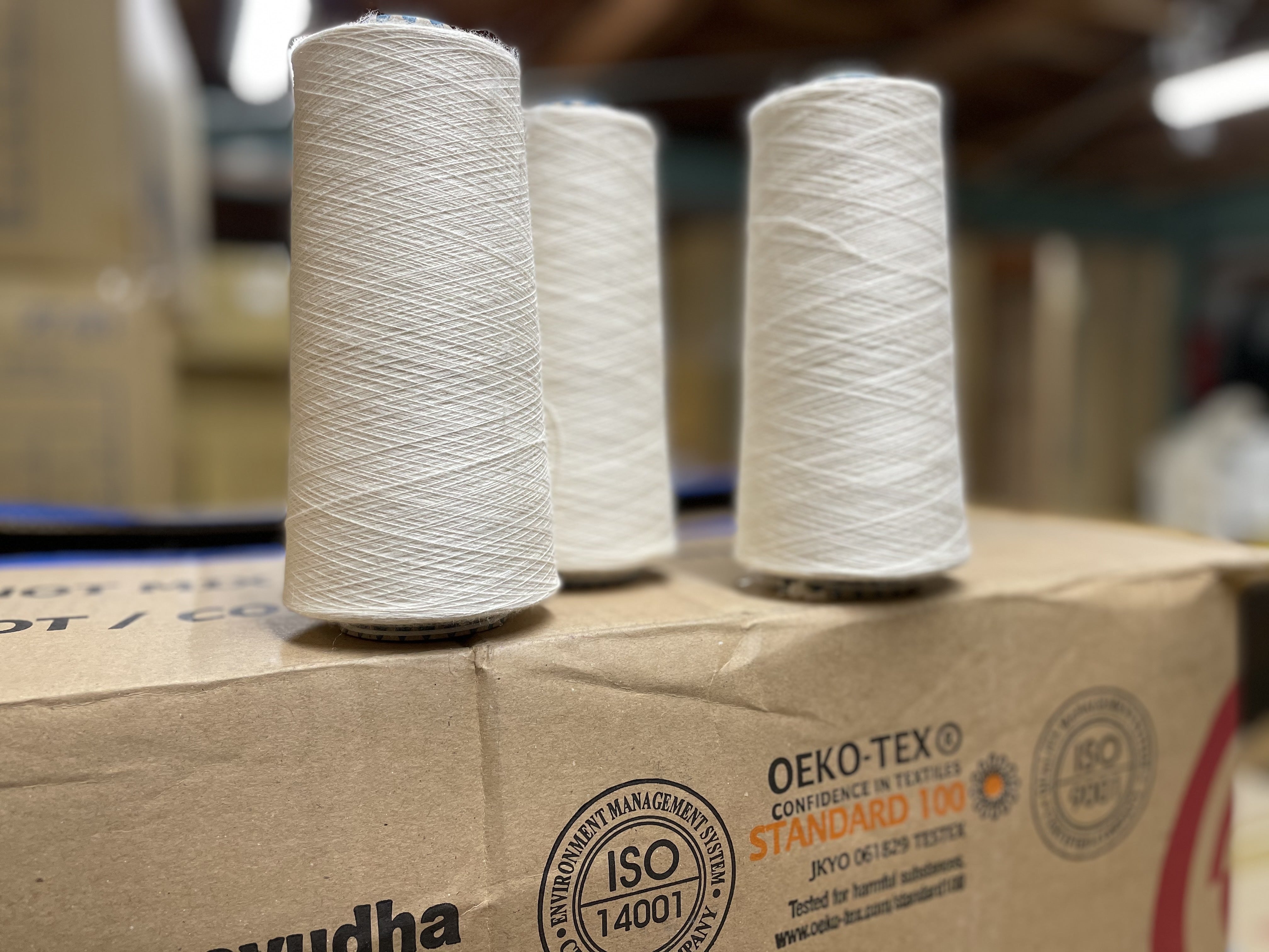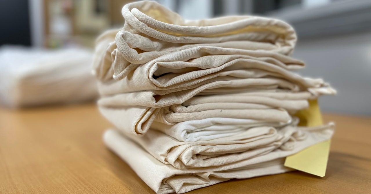 色をアイボリーにしたのも理由があり、真っ白にするには漂白剤や蛍光剤を使います。薬品を沢山使うと水を沢山使い環境負荷が高い為、薬品を極力使わずに済むアイボリーを選択しました。