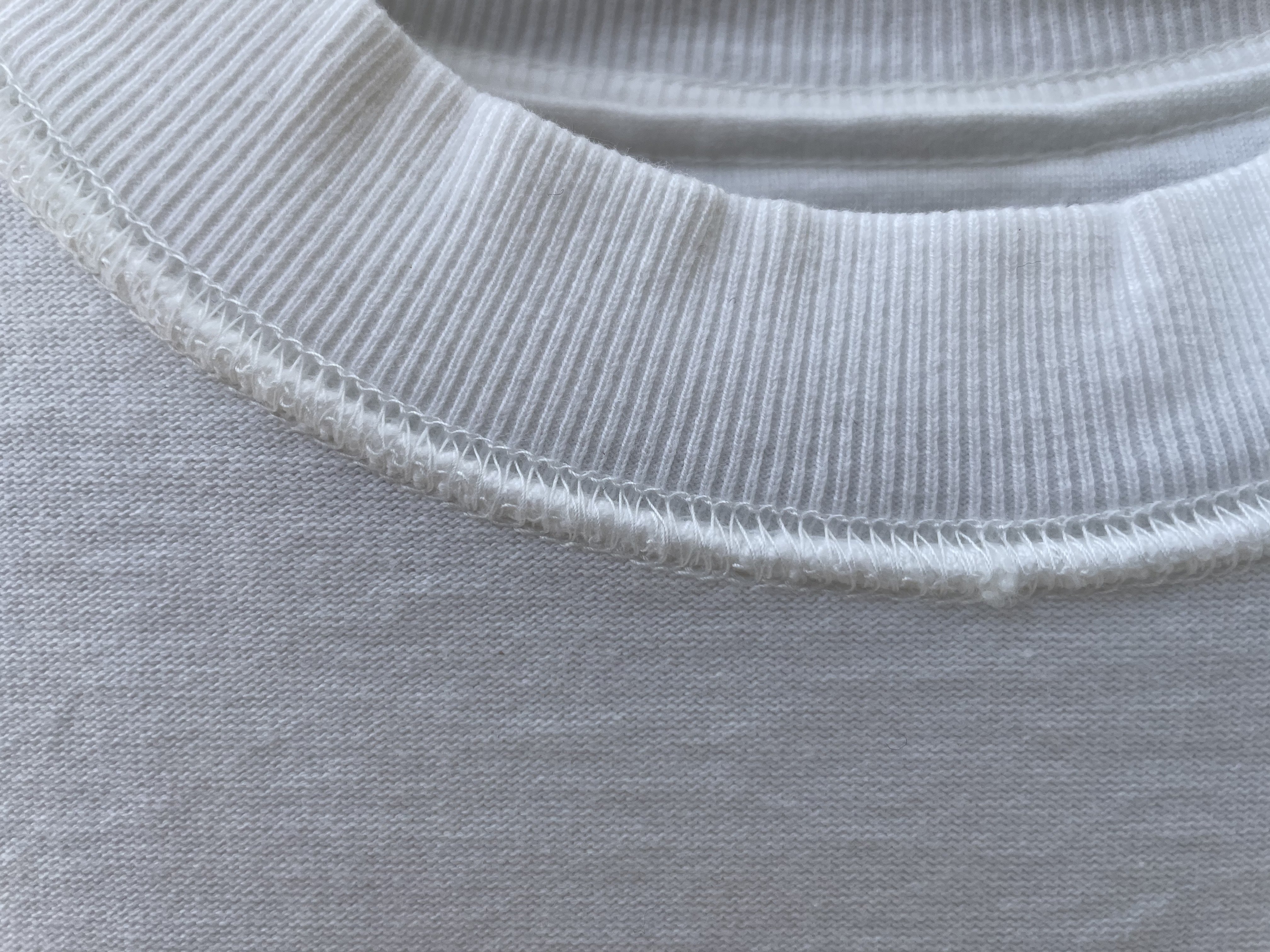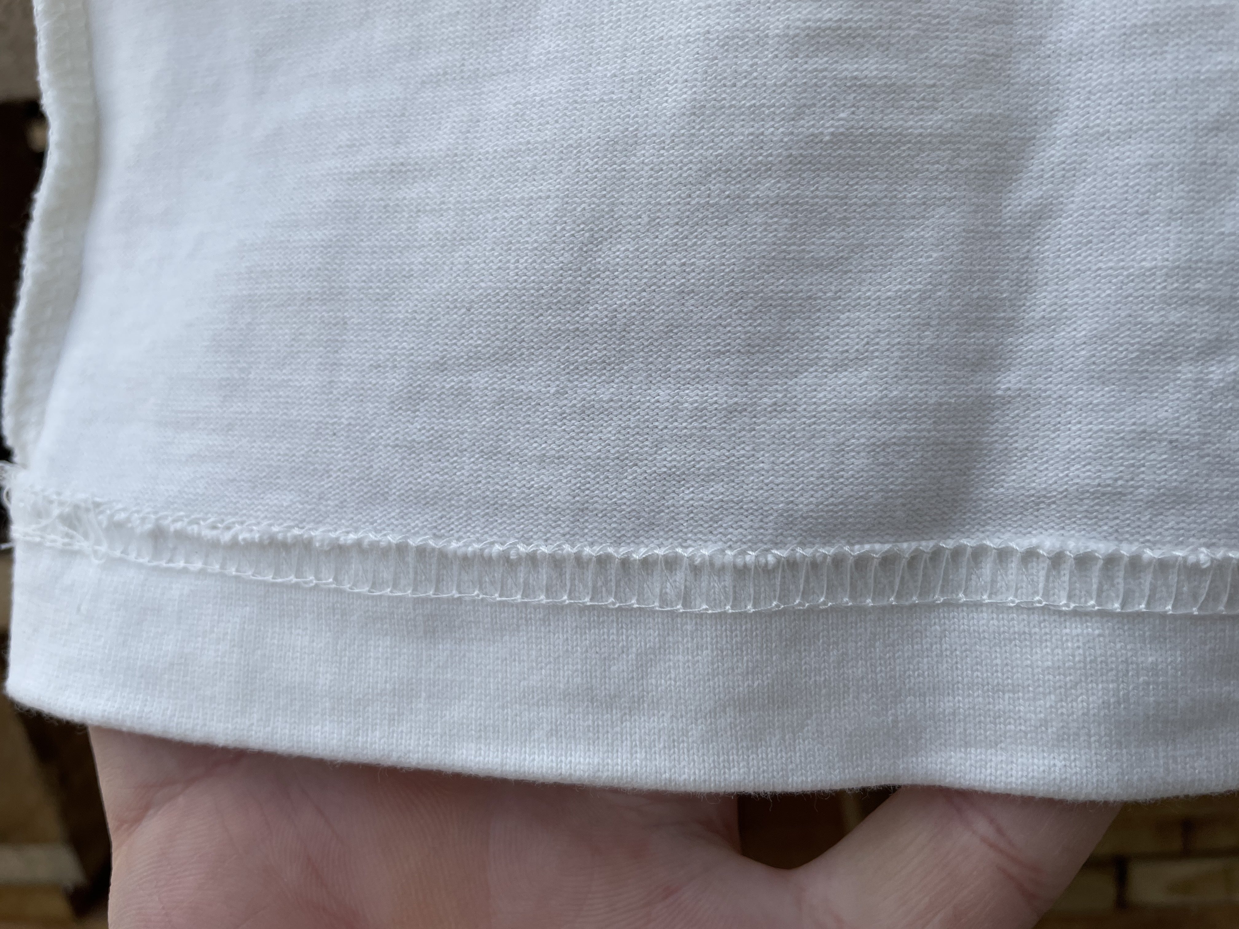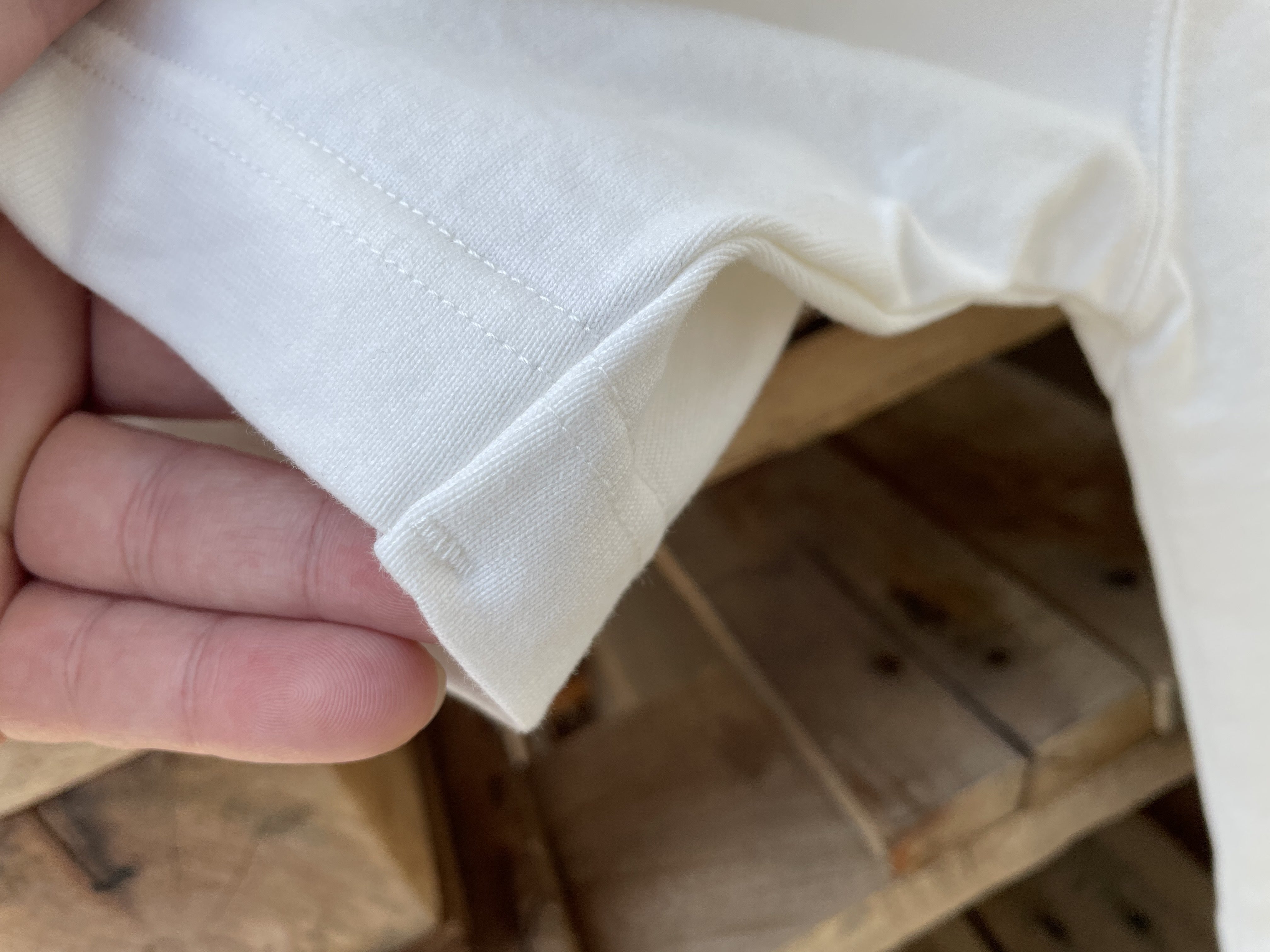 ここも2本またぎミシンが使われてますね、このフラットな縫い目が肩〜脇の違和感を感じなくさせてます。