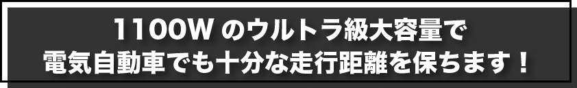 EV(電気自動車)のバッテリー切れでも安心の走行距離を保ちます。(リーフ 9-11kmの走行可能)