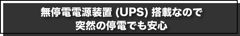 無停電電源装置(UPS)とは、停電などによって電力が断たれた場合にも電力を供給し続ける電源装置のこと。