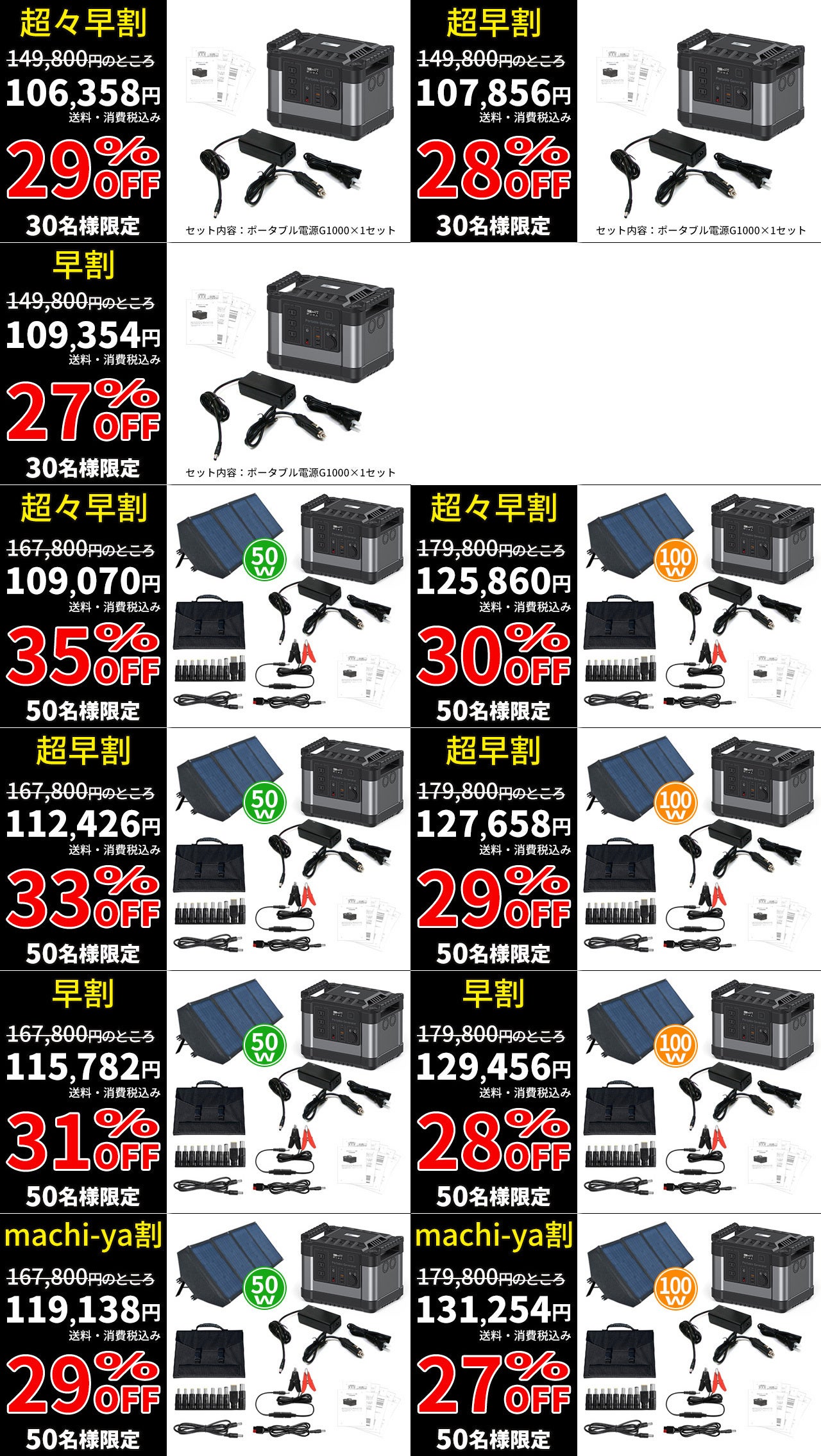 これら4つの機能を新たに搭載した大容量ポータブル電源・G1000を是非この機会に手に入れてください。
