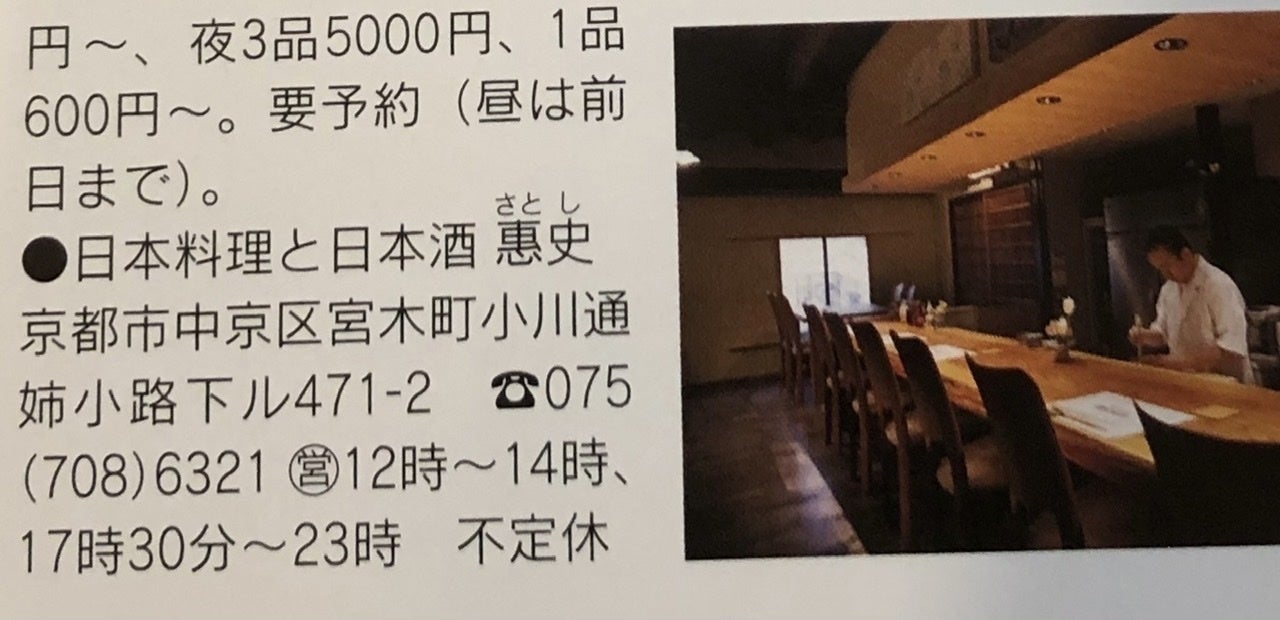 当ページをご覧頂きましてありがとうございます。京都市にて昨年6月にオープンしました、『日本料理と日本酒惠史(サトシ)』の保科と申します。