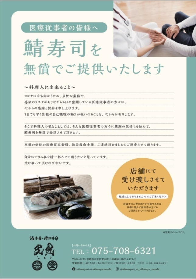 そこで料理人の私としましては、そんな医療従事者の方々に感謝の気持ちを込めて、鯖寿司の無償提供を始めました。