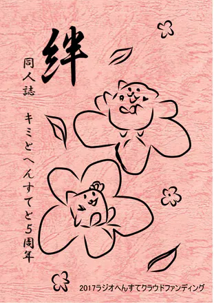 サブタイトル「同人誌 キミとへんすてと五周年」縦書き。(同人誌の、「同じものを好きな人。同志」という意味合いを、本の始めの方か、裏表紙に説明記載)