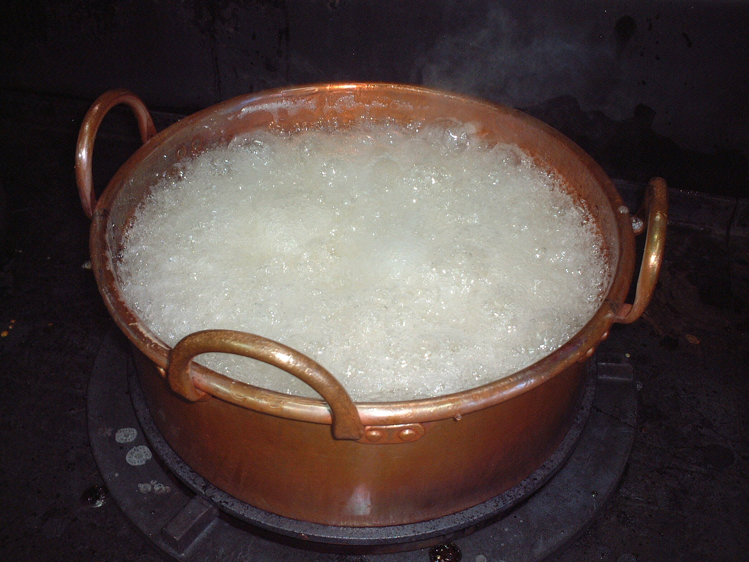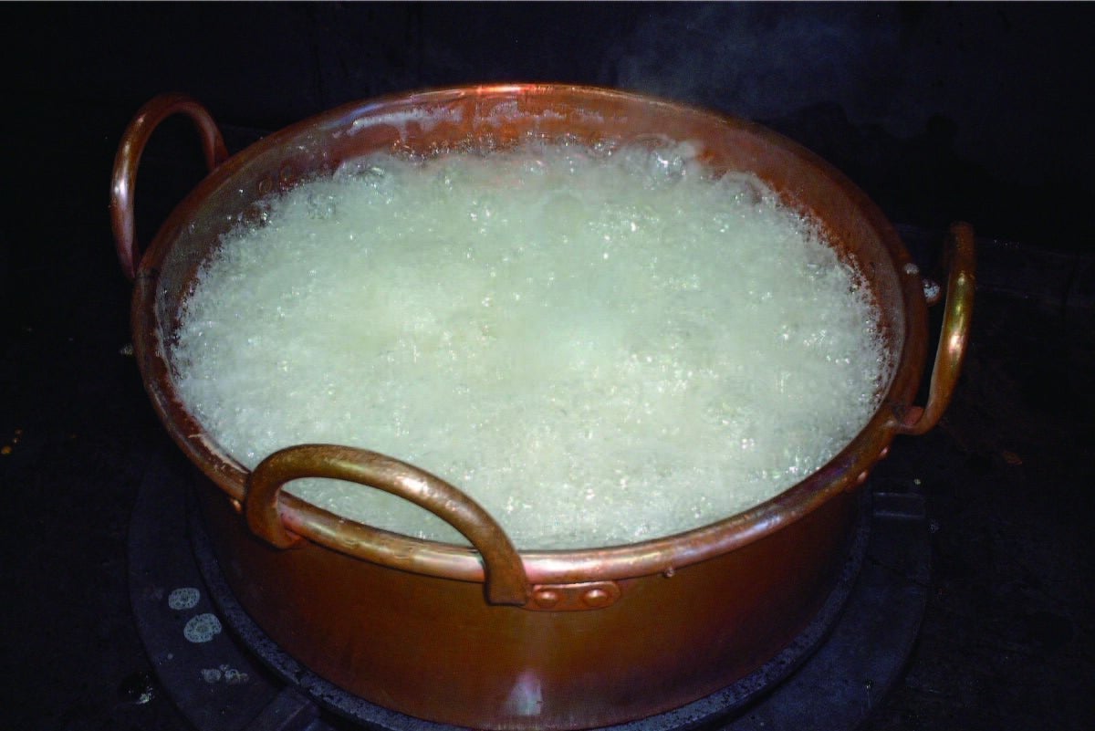 「飴匠さわはら」の京飴は地釜直火炊き。地釜(銅鍋)で直火炊きしています