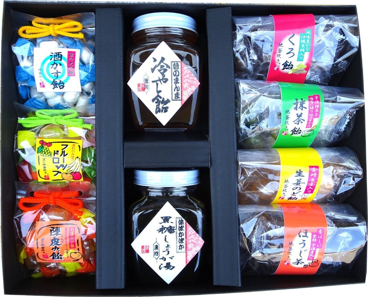 和風飴が5種類(黒飴、抹茶飴、はっか飴、生姜飴、うめ飴)と
